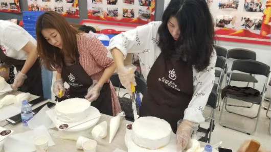 培训师示范制作蛋糕流程