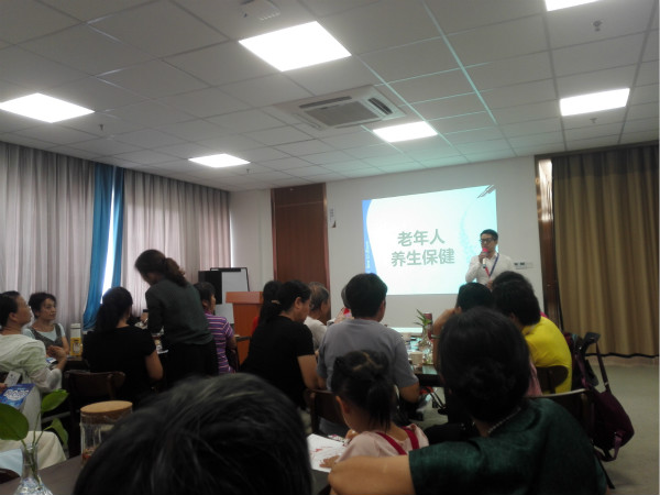 活动开始,体检中心的教授给现场的居民们进行了老年人养生保健的健康讲座,该教授根据老年人的生理特点,通过图文并茂的形式,讲解了不同食物对身体的不同功效,以及药物对身体的依赖性等。随后,现场的老人分为两组,现场进行了骨密度测试和TTM(测试全身是否存在亚健康等情况)的检验。