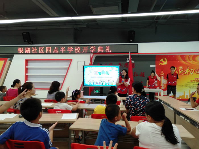 罗湖家园网讯:九月,快乐的暑假结束了,新学期如期而来,盼望已久的银湖社区四点半学校终于要开学了!为了让家长和学生更全面的了解四点半学校,加入四点半学校的管理和发展的探讨中,让四点半学校真正能够帮助学生们成长。2019年9月7日,在银湖社区党委的支持下,东西方社工服务社银湖社区党群服务中心开展了四点半学校开学典礼。
