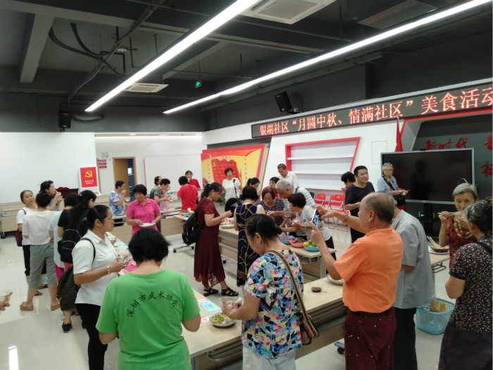 罗湖家园网讯:为增强社区凝聚力,促进党群沟通,营造中秋佳节欢乐祥和、和谐邻里的友好社区氛围,2019年9月11日中午,深圳市罗湖区清水河街道银湖社区党委联合东西方社工服务社银湖社区党群服务中心组织社区居民在新时代大讲堂开展“月圆中秋、情满社区”美食汇活动,邀请居民齐来做美食、尝美食、以菜会友,共享邻里情。