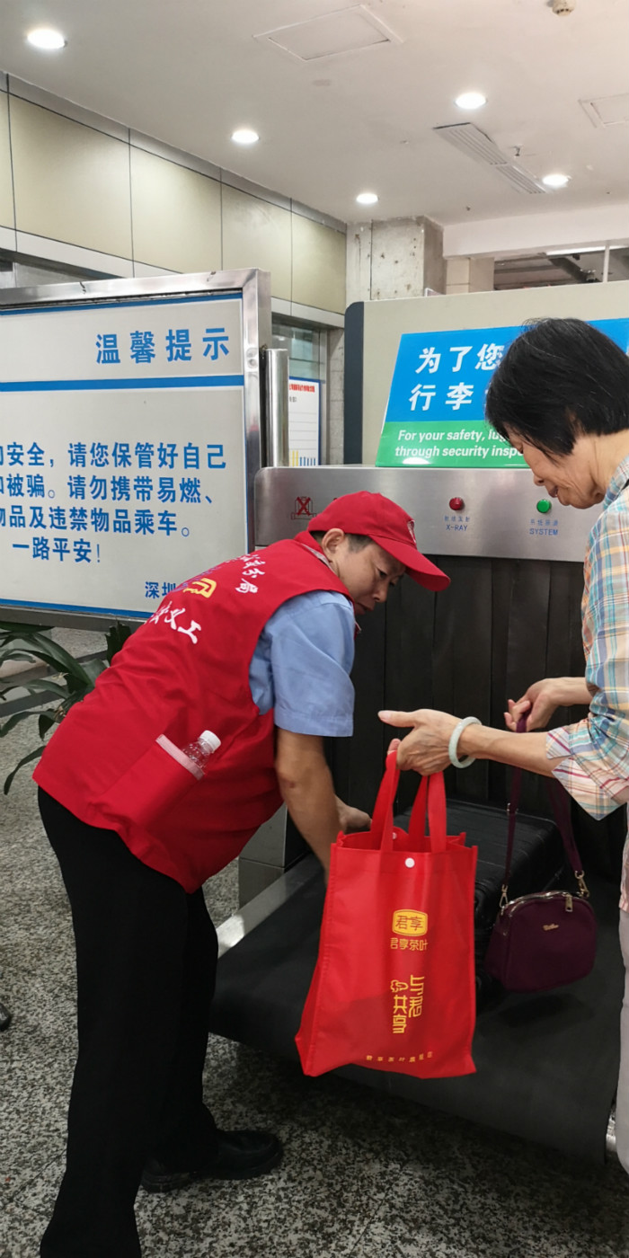 在深圳汽车站的志愿服务中,志愿者对旅客进行文明出行劝导、协助旅客搬运行李、信息咨询、客流引导、设备协助、秩序维护,对车站及周边环境卫生进行清理和维护等志愿服务。