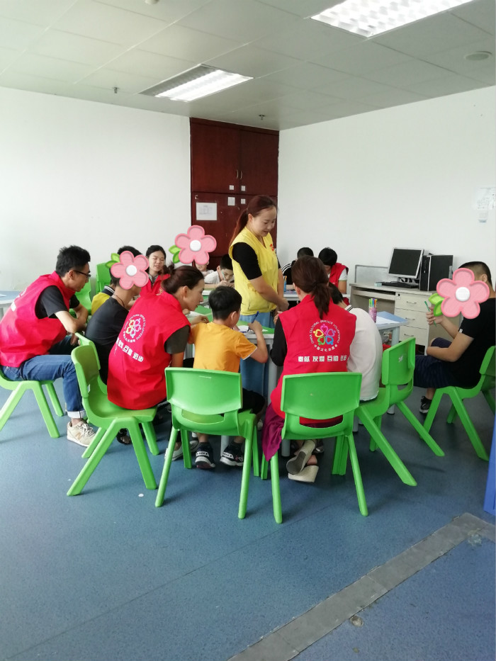 为了丰富自闭症儿童的内心世界,增加自闭症儿童与外界的交流,让更多人了解关心自闭症这一种精神疾病,同时也为了给志愿者提供价值奉献及自我成长的服务平台,2019年10月17日,深圳市东西方社工服务社银湖社区党群服务中心招募5名志愿者,协助梅园社区党群服务中心开展关注自闭症儿童活动。此次活动围绕“守护星娃,志愿者在行动”的主题展开,志愿者在教室里与自闭症儿童一同上课,并进行训练课程,如辨识图案的训练、找相同玩具等。在手工训练室里,志愿者和孩子们一起折纸、做游戏、做手工。随后,志愿者陪伴孩子们来到各自的教室进行文化课的学习,辅助孩子们独立完成一些活动,和孩子们进行亲切的互动交流。