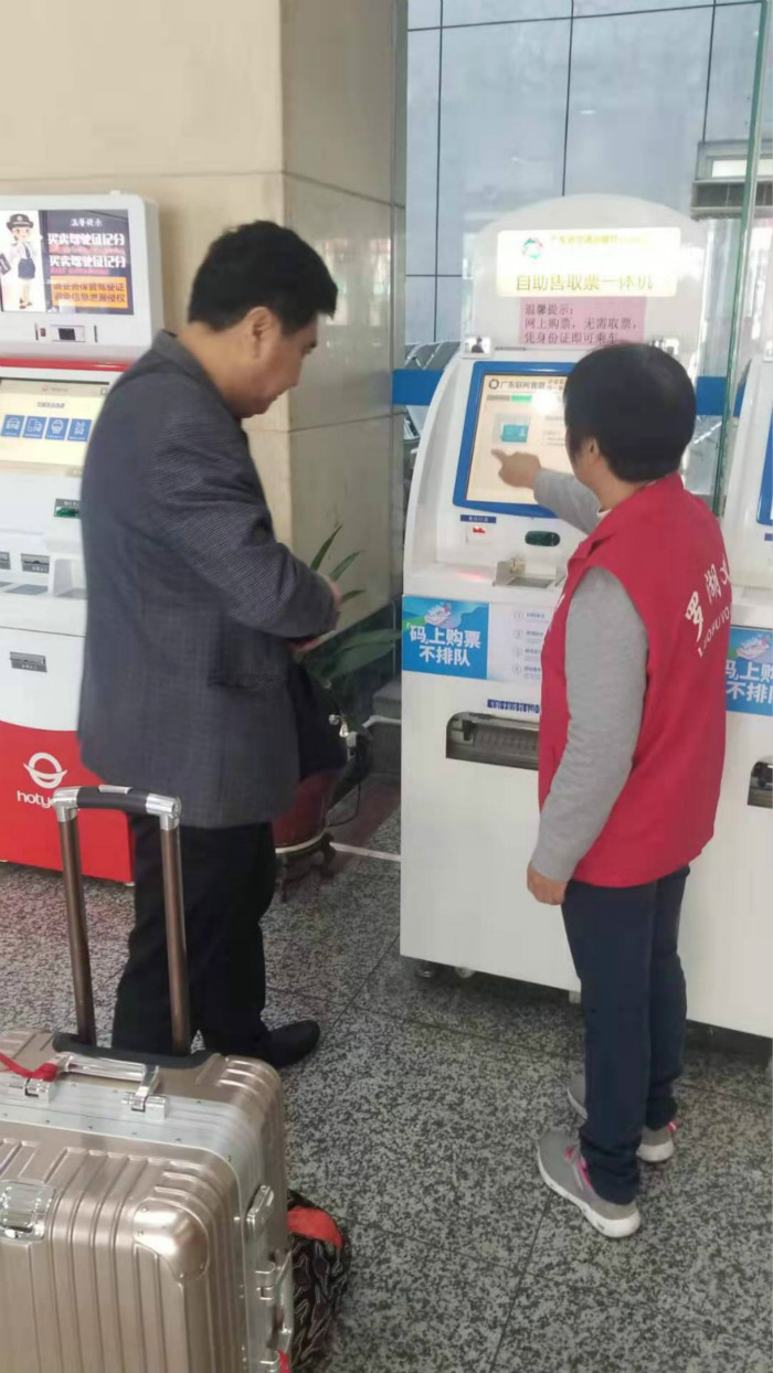驻点义工们号召乘客文明有序乘车, 指引乘客乘车时间及站点服务,并协助车站工作人员引导旅客行李过机安检,帮助行李多的旅客搬运行李至候车室等待上车等公益活动。本次活动有近20名义工参加,义工们热情主动帮忙老人和带孩子的旅客搬运行李,耐心答疑, 细心帮乘客照看东西; 尽心尽力, 志愿者们热心的服务,得到旅客们的点赞。