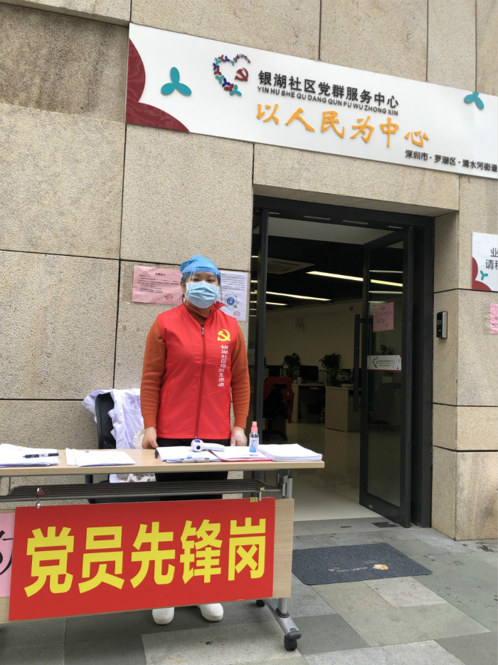 这几天,深圳气温骤降,最低温度到了10度以下。一大早,银湖社区党群服务中心的社工就组织志愿者值守在各个小区门口,与物业工作人员一起对进出人员测体温、查出入记录、引导居民进行外出与居家自主申报、防控宣传等工作,寒冷的天气中始终守护在防疫一线。退休党员王少华是银湖社区老年人协会会长,除了组织老年人协会的党员、会员参与防疫志愿服务,她还积极发挥党员的先锋带头作用,每天都与其他的志愿者奋战在抗疫一线,志愿服务期间,王少华严格要求自己,做到逢人必查,逢车必检。坚决做到不漏一人不漏一车,防止疫情输入。朱二娇、张俊贤夫妻是接到倡议书后最早报名的志愿者,他们表示:我们夫妻俩都是党员,在抗击疫情的关键时刻,我们要坚定站在疫情防控第一线,当先锋、作表率,到一线去参与疫情防控工作,为打赢疫情防控攻坚战尽一份力。除此之外,参与防控疫情的志愿者还有党员邵虎成及张平兰夫妇,党员邵虎成说:作为共产党员,就要做到始终不忘初心、牢记使命,为人民群众做出自己应有的贡献。