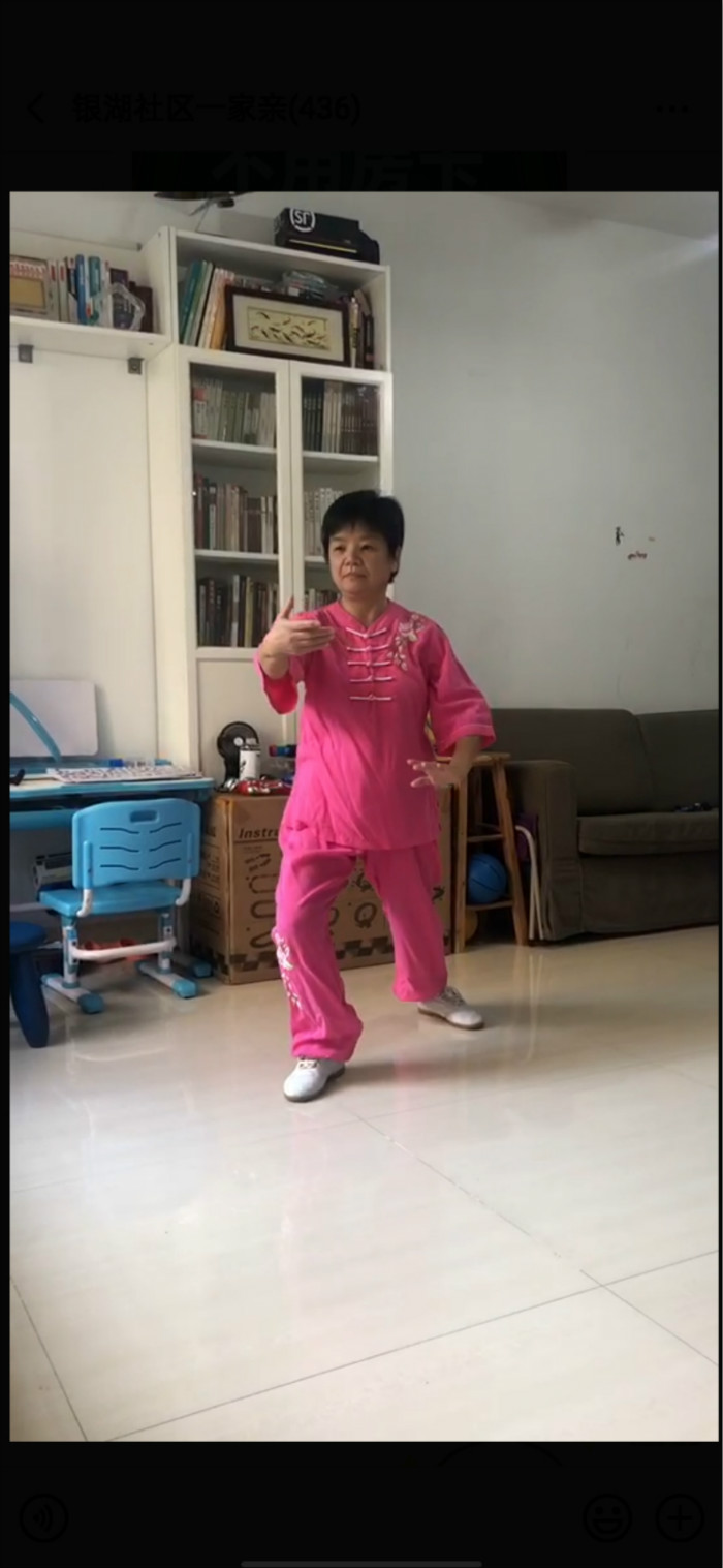 本次活动采取线上报名,参与者在社区居民微信群里以视频的方式记录及分享运动过程,让每一位长者都能感受到在家里运动的快乐并将这份快乐分享给微信群里的所有人。活动消息一发出,长者们纷纷积极报名表示要参与活动。有跳双人舞的、打太极拳的、练瑜伽的、打五步拳的,还有孙女儿陪爷爷在客厅的茶几上打乒乓球的。除了体力运动,八十岁老人还在家教小孙女玩扑克24点游戏进行脑力运动......丰富的运动方式让居民们大开眼界之余不禁惊叹宅家运动也可以如此精彩。居民微信群成员对长者们的运动视频十分的赞赏,有的年轻人表示通过与父母、长辈一起宅家运动后,感到家庭成员之间的关系更亲密了些,和父母、长辈的沟通更加轻松了。