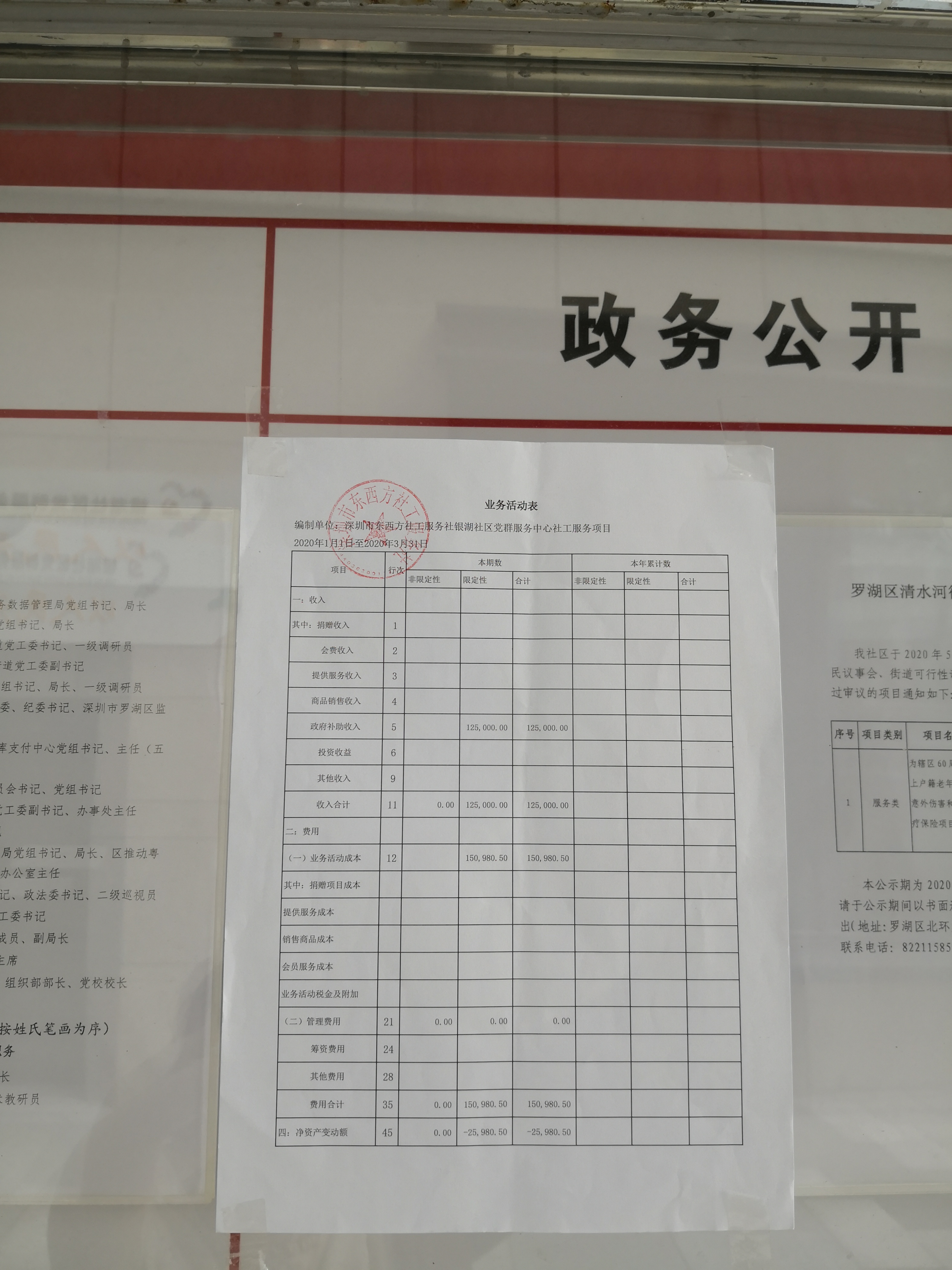 银湖社区2020年第一季度公示