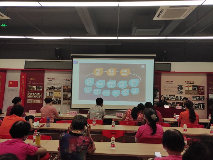 罗湖家园网讯:2020年7月24日,罗湖区老协“九九课堂”健康讲座和罗湖区百场健康素养巡讲系列讲座在银湖社区党群服务中心开展“预防老年痴呆”的主题健康讲座。罗湖区老年协会张学军会长、清水河街道老年协会陈秀英会长和清水河街道辖区各社区老年协会会长、银湖社区党委、银湖社区老年人协会参与并大力支持本次讲座。