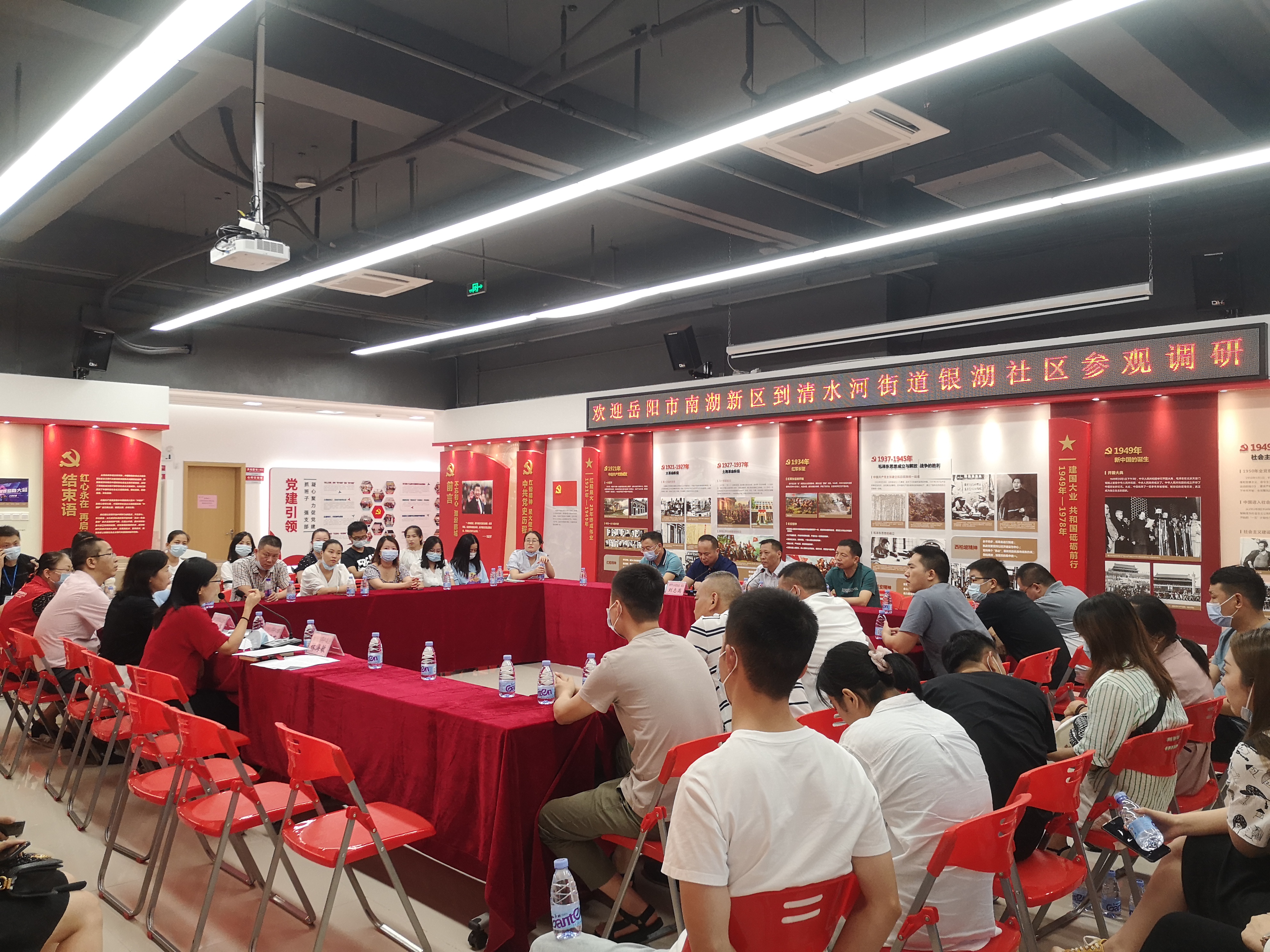 岳阳市南湖新区一行对清水河街道和银湖社区在工作上的支持表示衷心感谢,通过此次现场参观及工作交流座谈,相互交流,相互促进,将以此次交流学习为契机,推动基层治理能力再上新台阶。