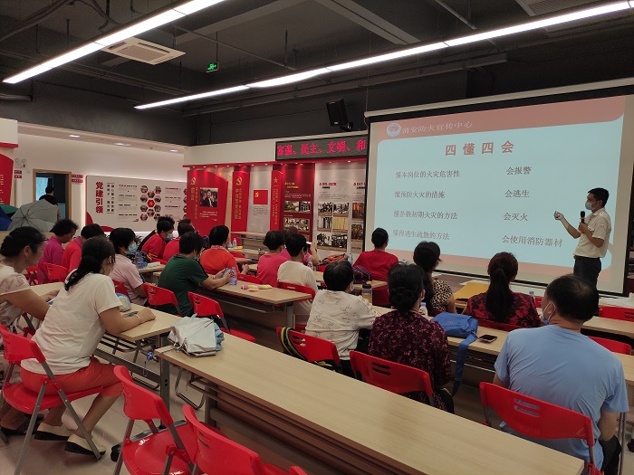 罗湖家园网讯:2020年罗湖区弱势长者居家安全推广进行中,本年度项目主要着手长者消防安全领域。针对今年项目的主要服务内容,为了让“老伙伴·志愿行”服务项目的志愿者们增强凝聚力,提高组织归属感,更好地为弱势长者提供家居安全服务,在银湖社区党委的支持下,2020年9月9日,银湖社区党群服务中心对项目志愿者进行消防安全知识培训。