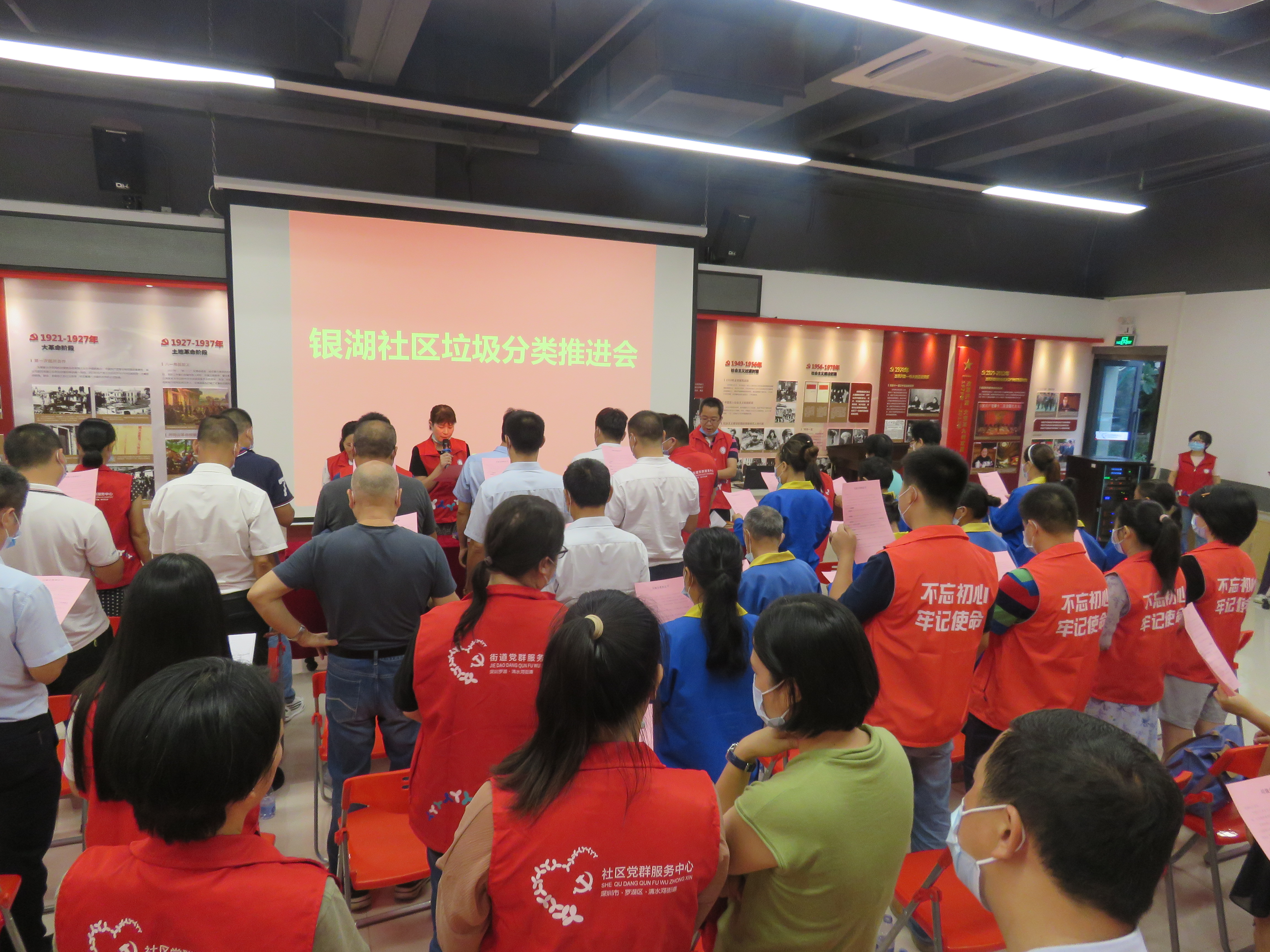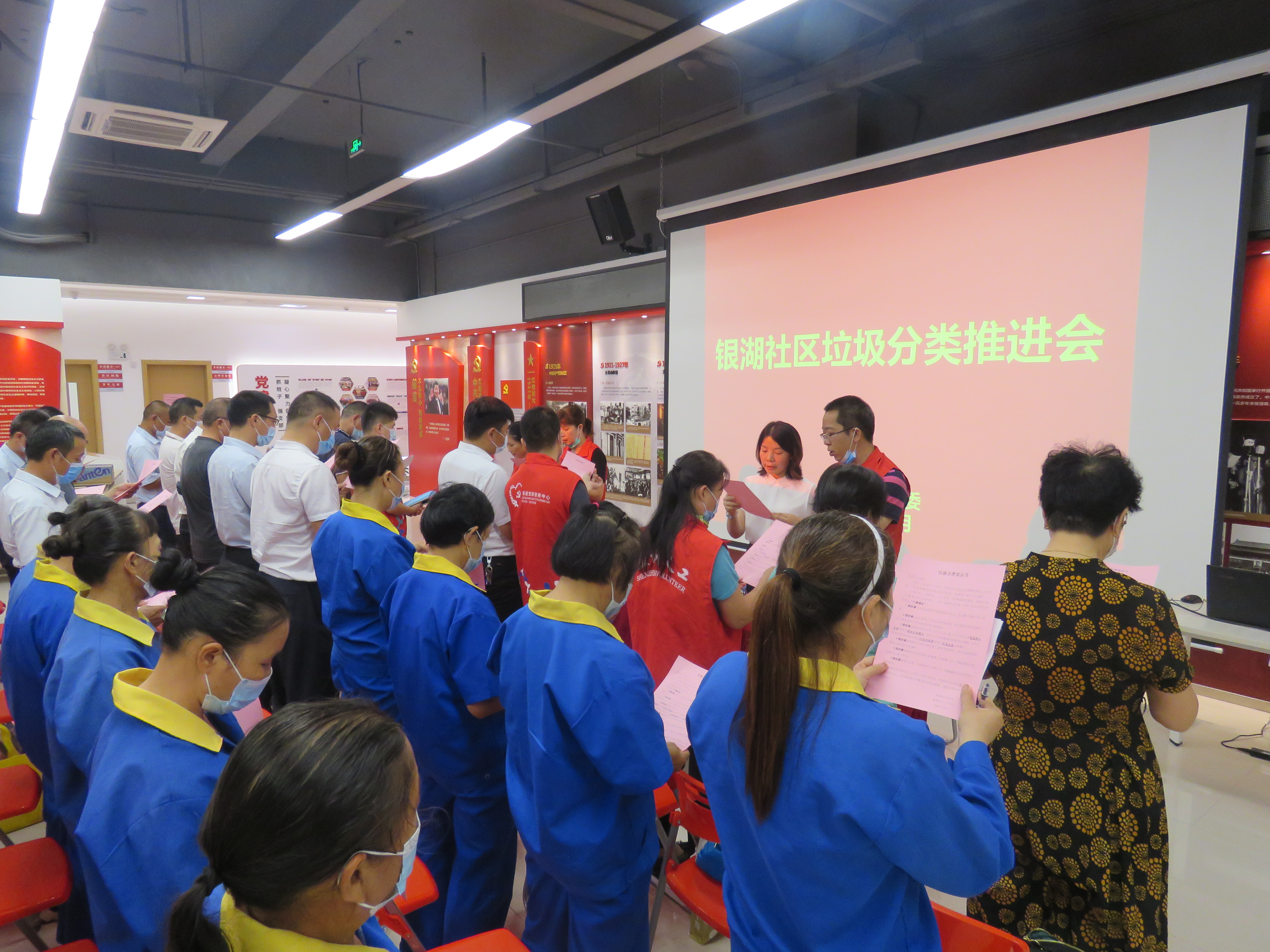 罗湖家园网讯:为深入贯彻习近平总书记对垃圾分类工作的重要指示精神,倡导资源循环利用,维护绿色、可持续发展城市生活环境。2020年9月17日下午,罗湖区清水河街道银湖社区党委、社区党群服务中心在社区新时代大讲堂开展“文明示范我带头,垃圾分类我先行”垃圾分类推进会,辖区各物业单位、党员干部、垃圾分类督导员及社区居民等共计60余人参加会议,进一步提升居民主动参与垃圾分类的意识,提高居民垃圾分类的参与率和坚持率,有序有力推动垃圾分类工作在银湖落地落实,在社区基层治理方面先行示范。