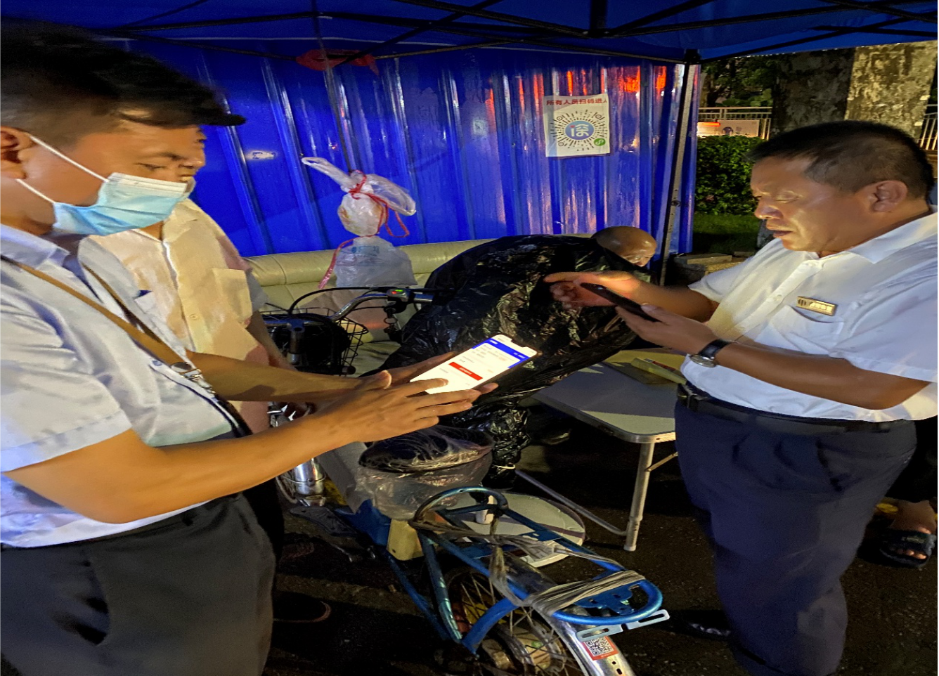 罗湖家园网讯:为落实电单车一车一码登记注册,使该项工作进一步普及宣传到位,9月10日晚开始,银湖社区党委持续组织安全专干、网格员到银湖住宅区、金景花园等地开展落实电单车二维码张贴登记专项工作,推动电单车规范化管理,向来往电单车车主宣传落实一车一码,精细管理车主姓名、电话号码、住址,进一步推动电单车一车一码工作全面铺开。
