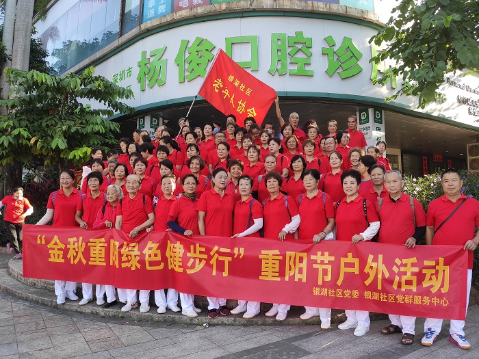 罗湖家园网讯:2020年10月27日上午,在罗湖银湖社区党委领导下,银湖社区党群服务中心联合社区老年人协会组织辖区内长者开展“金秋重阳绿色健步行”重阳节户外活动。
