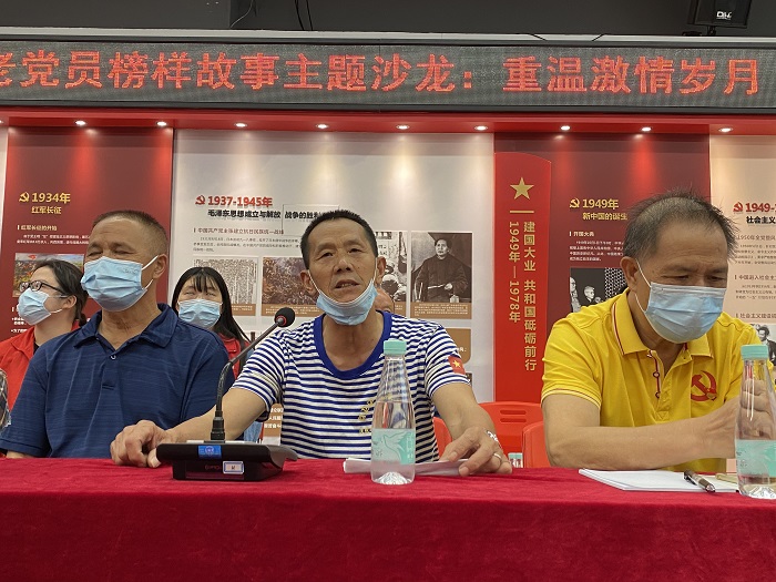 本次主题沙龙邀请到了老党员同志代表卢国林,三线建设参与者谢林辉、王筑平,对越自卫还击战老战士王少明讲述他们的激情岁月故事。现年82岁,有着61年党龄的老党员同志卢国林表示,我这辈子就是党的人,党员身份不能变,为党干事的劲头不能减,我希望以我的故事激励下一代。