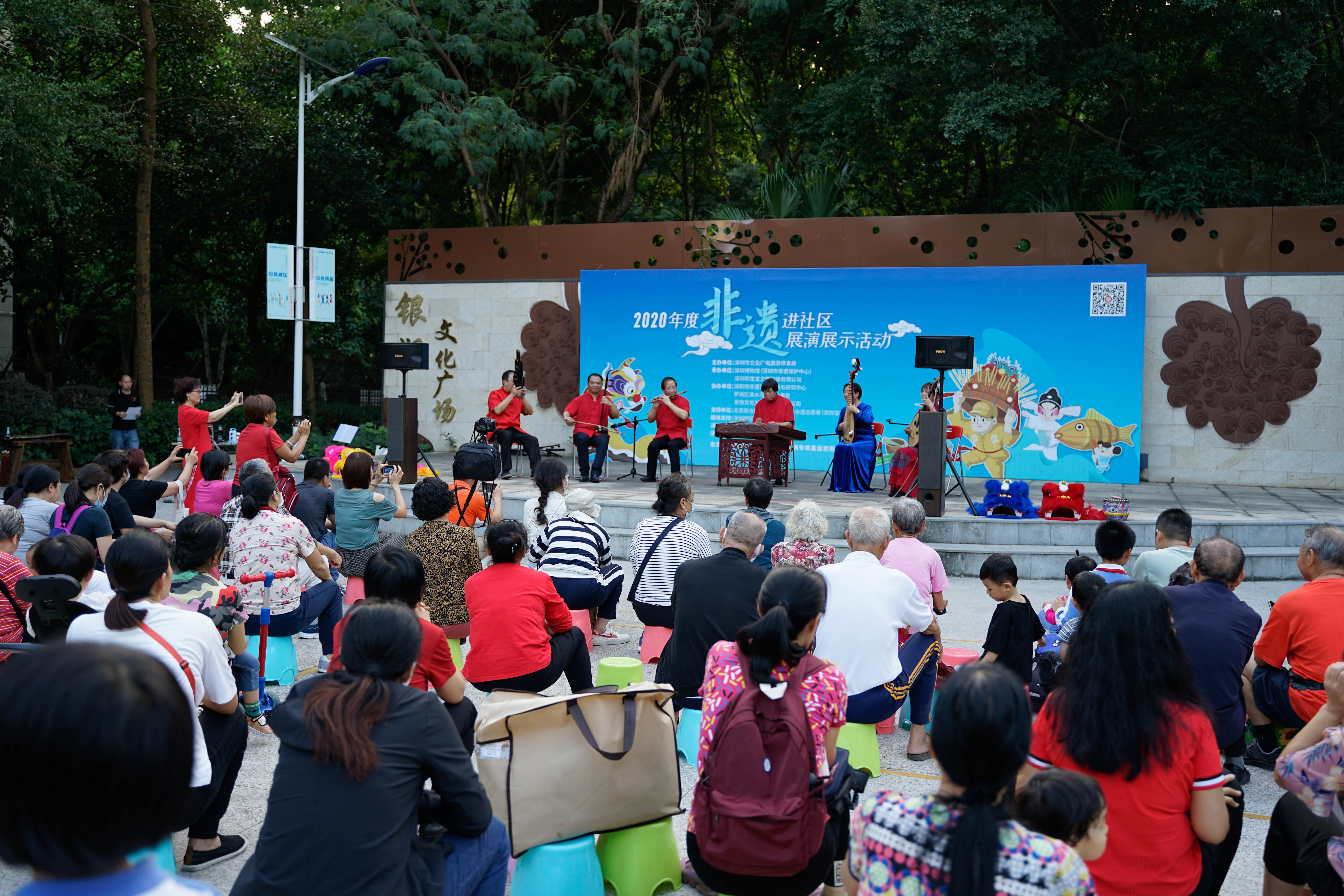 罗湖家园网讯:为进一步加强我国文化遗产保护,继承和弘扬中华民族优秀传统文化,推进社会主义先进文化建设,让居民零距离接触非遗、了解非遗、提升对非遗的认知,从而推动非遗的传承和发展。2020年11月20日下午,由深圳市文化广电旅游体育局主办、清水河街道办事处协办的非物质文化遗产进社区展演活动,在银湖社区文体广场举行。