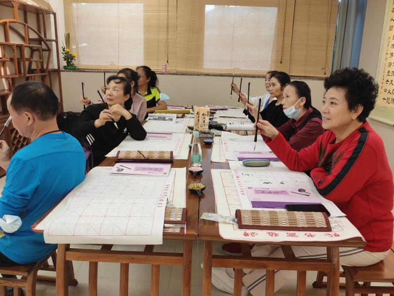 毛笔书法是我国古人智慧的结晶,也是祖先留给我们的一笔巨大的宝藏和财富,即使科技进步,社会发展。但是书法练字仍然是修生养性、陶冶情操的重要组成内容。通过书法兴趣班的开展,提高长者对书法的兴趣和书写基本功,长者们可以每天结伴来画室练字,增进他们之间互动交流和友谊,丰富他们的精神文化娱乐生活。