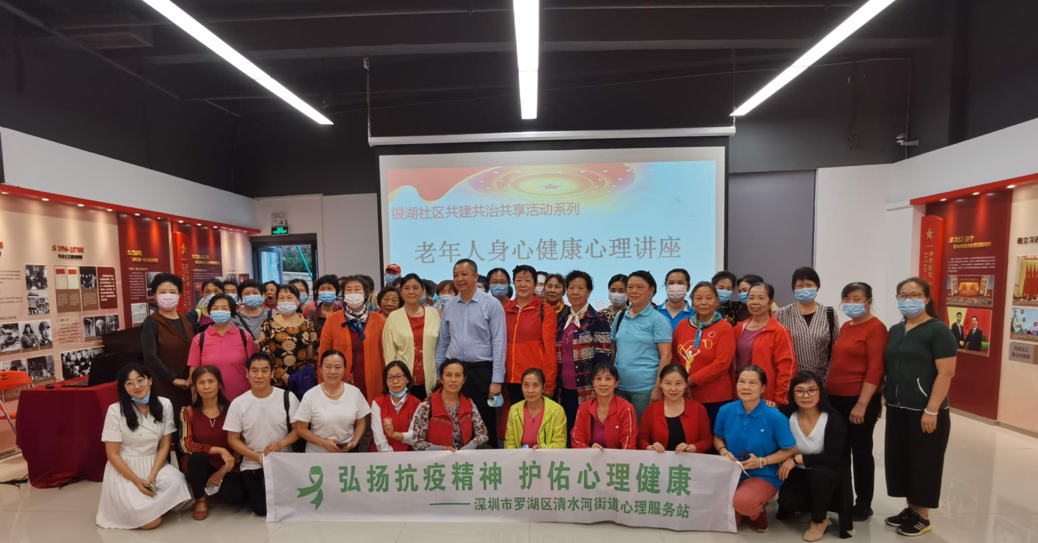 2020年10月23日,社区大讲堂第1期在银湖社区党群服务中心开展,融合教育科技(深圳)有限公司邀请了湖南中医药大学肾脏病学博士、中南大学中医内科博士——黄仁发,给清水河街道各社区近80位老年朋友讲解身心健康科普讲座,此次讲座围绕“老年人身心健康和中医养生”展开,黄博士从老年人身心的认识误区开讲,逐渐让大家了解老年人常见心理问题以及面对这些困扰时该如何处理。现场座无虚席,很多听众在讲到知识要点时会对黄博士的课件内容进行拍摄。