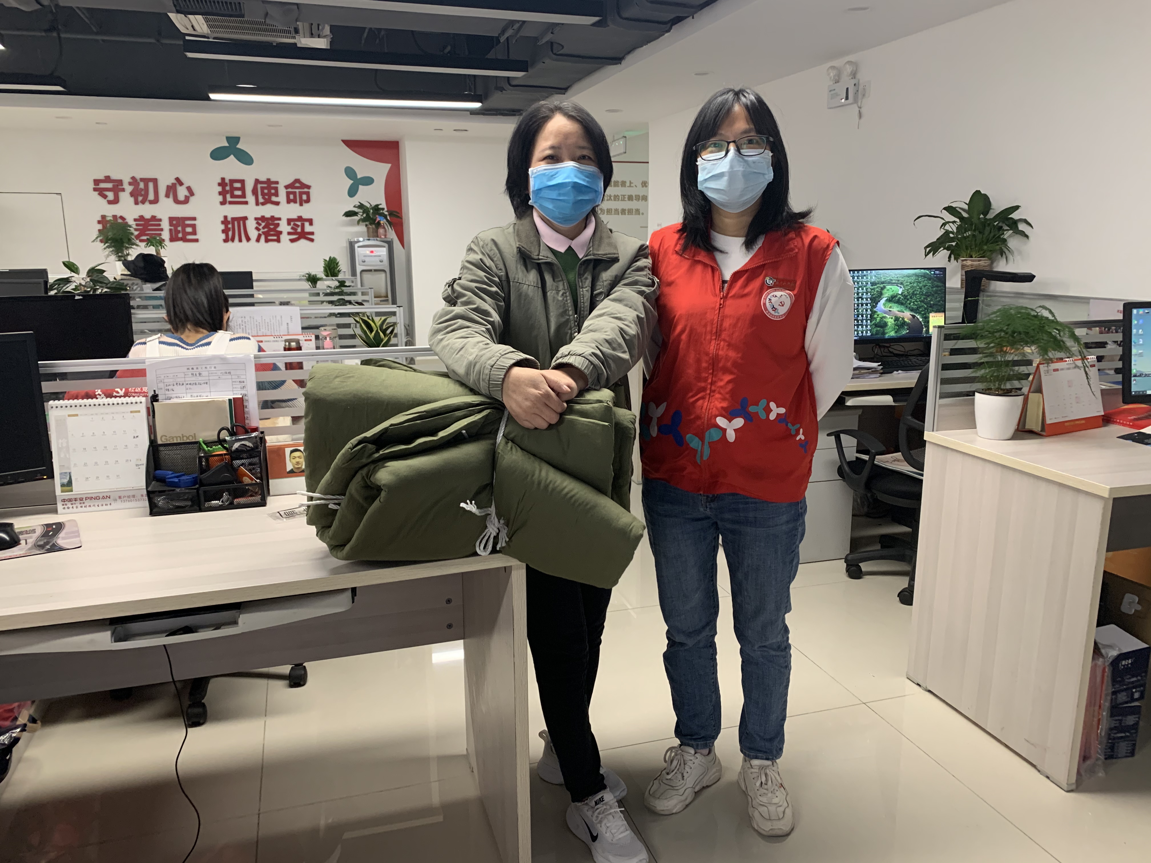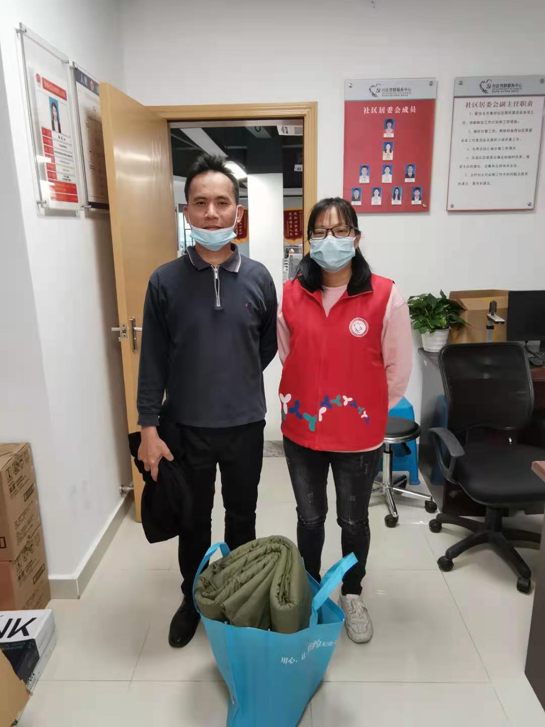 罗湖家园网讯:由于近期气温骤降,为了确保辖区困难家庭能平安渡过这个寒冷的冬天,近日,银湖社区开展了“寒冬送温暖棉衣棉被暖人心”活动,为辖区低保家庭送去了棉衣棉被,让困难群众度过一个温暖的冬季。(来源:银湖社区 通讯员:黄建英 编辑:李军)