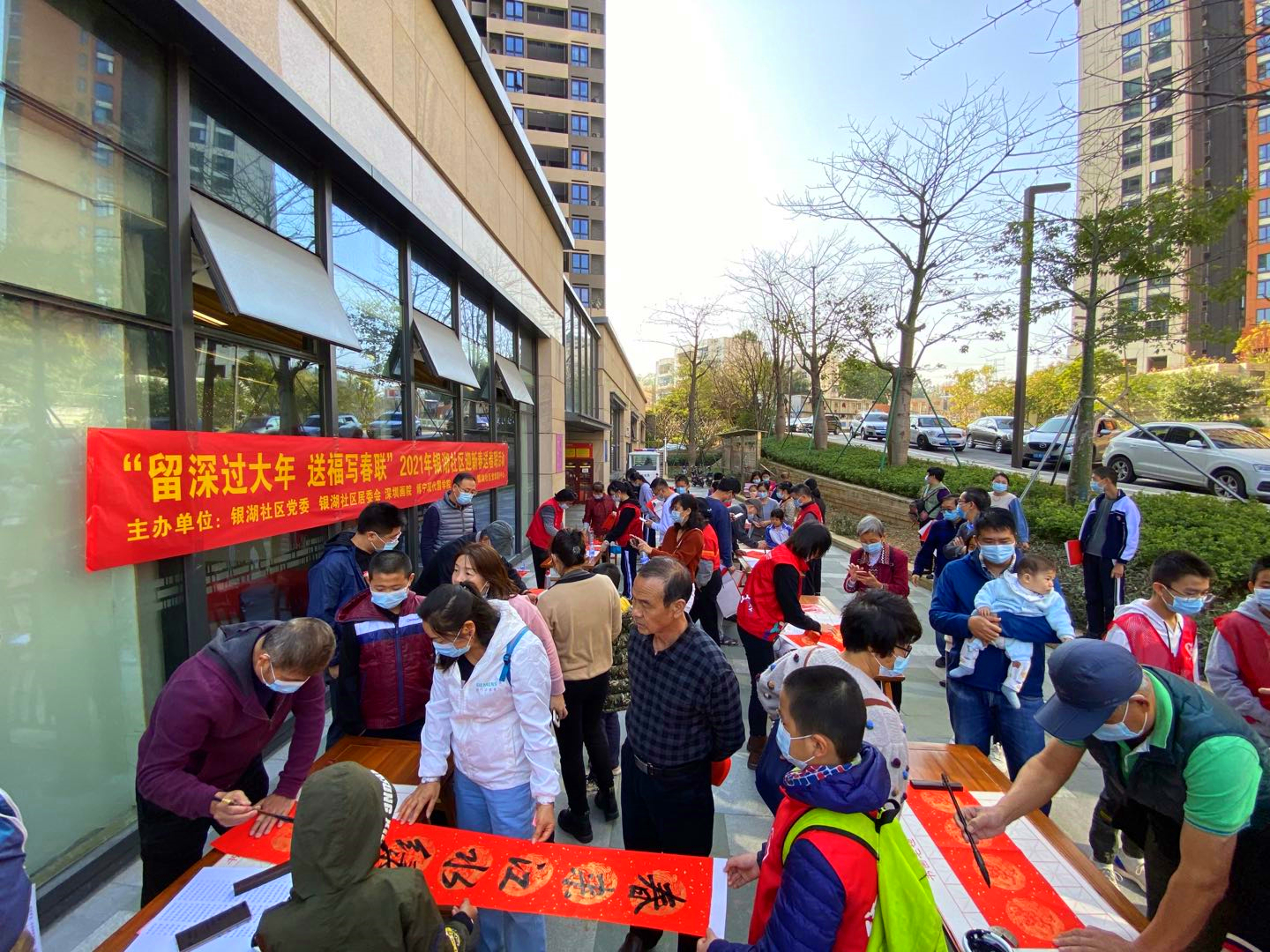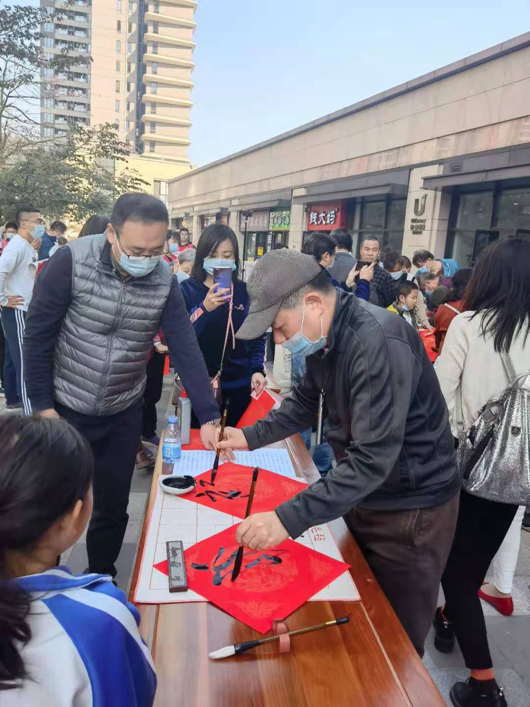 据悉,此次活动共吸引200多人次参与,送出春联160多对、福字200余张。社区青少年义工也在现场积极维持秩序,有的在分发纸张,有的在协助居民选择对联内容,有的给书法老师当助手,也有的在引导居民晾晒对联等。(来源:银湖社区 通讯员: 皮翠华 张家豪 李秋婵 编辑:李军)