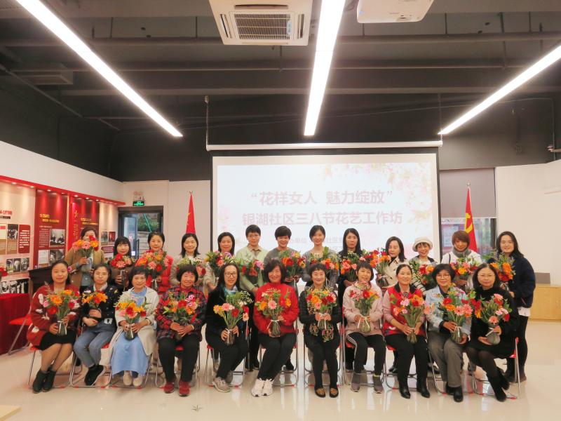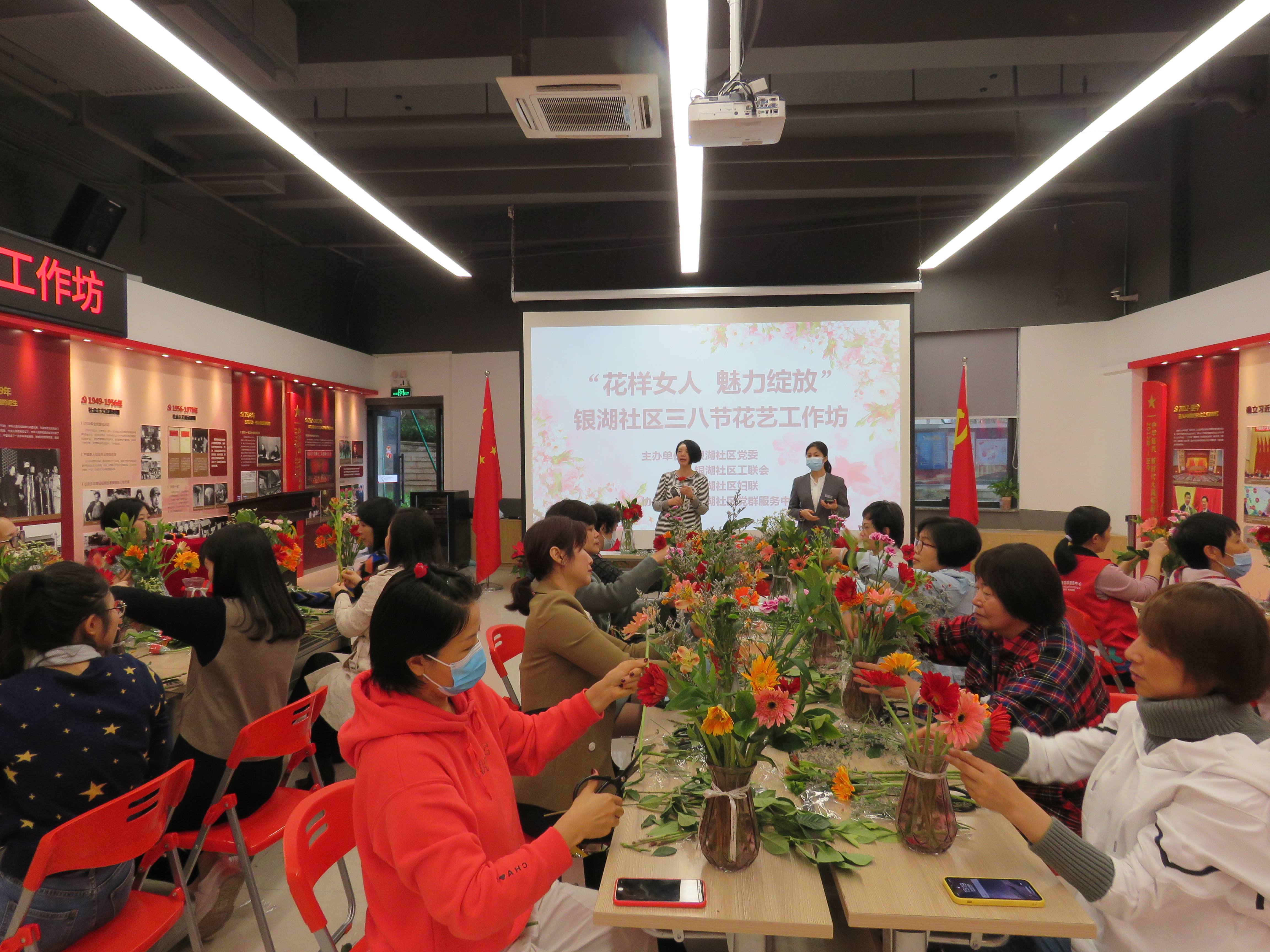 罗湖家园网讯:三八妇女节是世界的传统节日,也是广大妇女的节日,为了进一步增强基层党组织的凝聚力和号召力,体现社区对辖区妇女的特别关爱,同时丰富妇女的业余文化生活。3月4日下午,银湖社区党委、工联会、妇联携手举办“花样女人,魅力绽放”三八花艺工作坊活动,吸引了银湖社区三十名社区妇女居民参加。