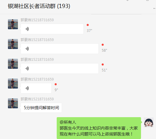 罗湖家园网讯:生活中经常会发生一些大大小小的事故,有些是难以避免的。当我们遇到这些事故时,怎样处理它们才是关键。我们应沉着应对,运用正确的方法将伤害减小到最低。因此,我们应了解并掌握一定的急救知识,学会并运用一定的急救技能。2021年7月2日上午十点,社工与怡康妇产医院的郭医生在银湖长者群内给大家开展线上“常见急症的处理”知识讲座,共有193余人参与。