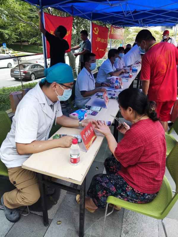 罗湖家园网讯:为扎实开展党史学习教育,聚焦群众“急难愁盼”问题,推进“我为群众办实事”,7月31日下午,深圳市罗湖医院集团组织近20名专家、医护人员到罗湖区清水河街道银湖社区,开展“我为群众办实事”之基层义诊活动。