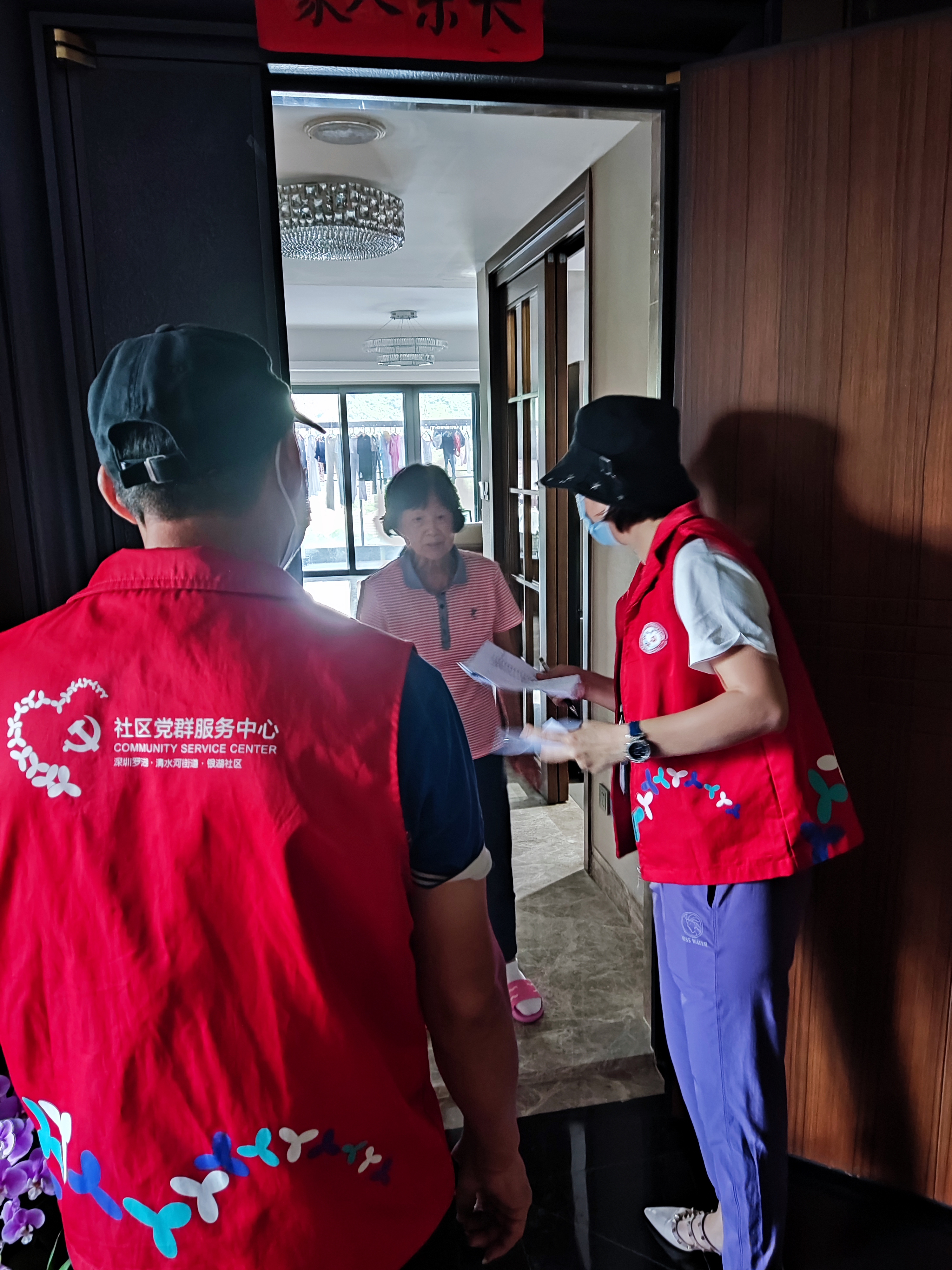 罗湖家园网讯:为进一步加强新冠肺炎疫情防控工作,提高居民防控意识,按照深圳市委组织部的指示精神,8月28日下午,银湖社区党委、东西方社工服务社银湖社区党群服务中心共同组织社区党员志愿者,社区党委副书记、工作人员、清水河城市服务“U”站志愿者等到银湖蓝山小区及周边开展防疫宣传活动,向小区居民宣讲防疫知识,宣传健康文明生活理念,切实筑牢疫情防线。