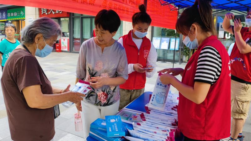 活动期间,志愿者联合叮咚快药团队每日进驻一个小区,向小区居民特别是老年人讲解如何更好地预防病毒侵入,强调接种新冠疫苗的重要性,主动给没有佩戴口罩的居民逐一派发一次性口罩、宣传单页并告知居民做好个人防护。与此同时,组织志愿者加强每个小区卡口的出入人员体温检测,引导辖区居民树立健康生活理念,减少不必要的外出,鼓励居民共同参与“无疫小区”建设,同心防疫,守护家园。宣传活动期间,志愿者共发放宣传单800余份,接受咨询1500余人次,派送一次性医用口罩2700余包,通过宣传让居民尤其是留守老人认识到防疫抗疫是事关“你我他”的大事,进一步筑牢健康屏障。