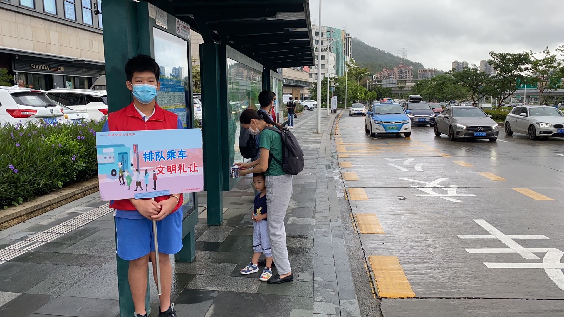 活动中,青少年志愿者分为两支队伍,分别在深圳汽车站内开展扶老携幼、信息咨询、协助购票、行李进站、体温检测等服务;另一支队伍在辖区内各公交站台维持乘车秩序、发放宣传单页、协助老人或行动不便人士上下车、引导市民文明过马路等志愿服务。活动当天,身穿红马甲的小志愿者成为一道靓丽的风景线,给周围的市民留下了深刻的印象,他们纷纷竖起大拇指点赞:学生志愿者的行动传递了正能量,辐射了整个城市的文明程度,我们要把文明行为带到自己身边,让更多的人参与到志愿活动中去,我们的社会才会更加美好与和谐。青少年们也表示:我们要从当下做起、从小事做起,倡文明之风、行文明之事、做文明市民,为创建文明城市献出一份力。