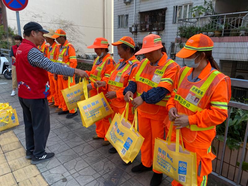 罗湖家园网讯:2021年10月26日,是广东省第28届环卫工人节及深圳市第5个“关爱环卫工人日”,为了体现社区对环卫工人的关怀、进一步激发环卫工人的劳动热情,清水河街道银湖社区党委、东西方社工服务社银湖社区社工站、清水河U站志愿者成立慰问组,对坚守在工作岗位的环卫工人送上节日的问候。