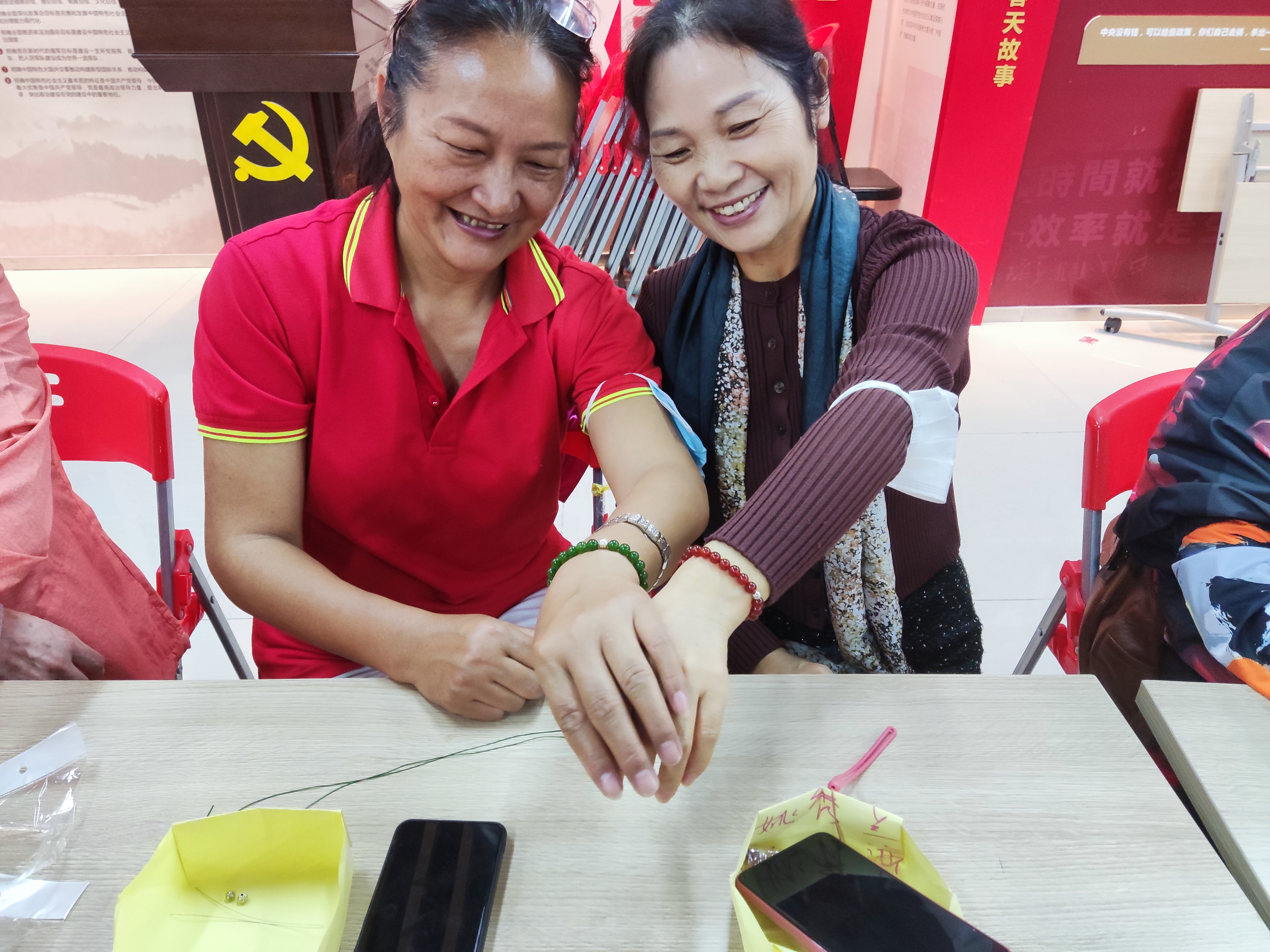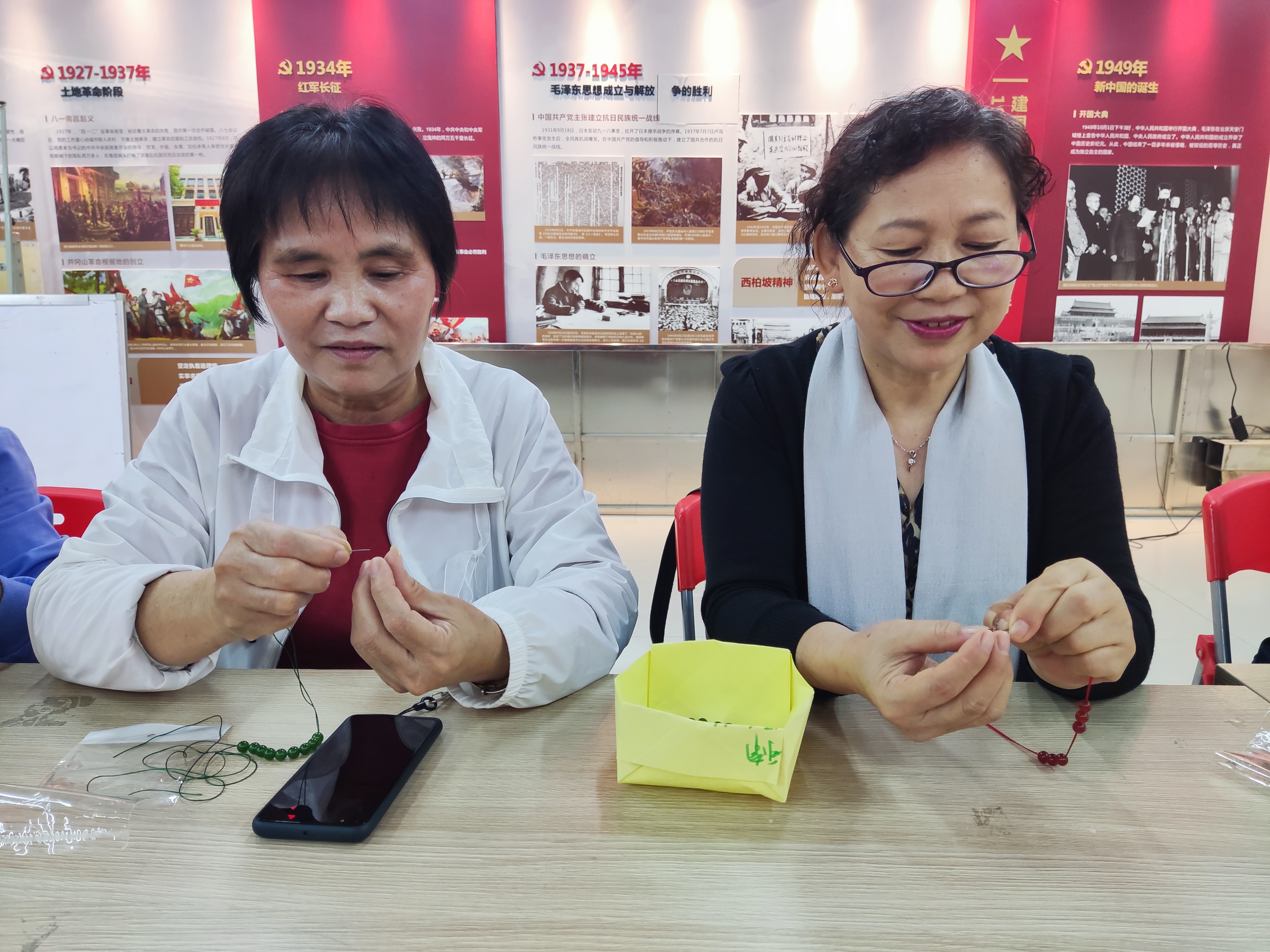 活动中,社工为大家展示了成品,并讲解了串珠制作方法、技巧和颜色搭配,手把手地进行传授。大家认真地进行学习和交流,在其乐融融的气氛下练习编织手法。看着一颗颗小珠子经过自己的双手变成精美的工艺品,长者们收获的是满满的成就感和喜悦感。珠活动圆满结束,社区长者姚阿姨说道:“对这样动手动脑,好看又有益的手工活动非常喜欢,手工制作对人有明目活手作用,同时,亲自动手制作的工艺品,还能为自己带来成就感。”现场的阿姨们也纷纷表示非常喜欢这样的手工坊。