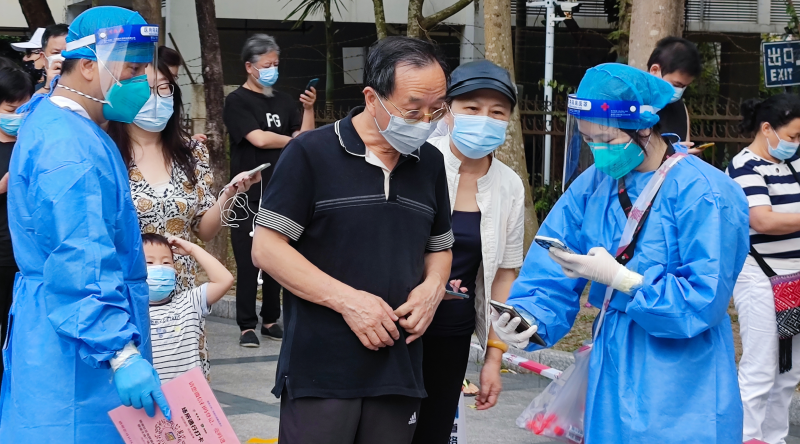 参与活动的青年志愿者中,有企业CEO、金融业高管、律师、教师、医务人员、事业单位职员等。5月4日当天,志愿者们准时来到银湖社区文体广场核酸采样点报到,全面协助工作人员做好进场扫码、信息录入登记、秩序维护、扶老携幼、注意事项提醒等工作,他们发挥巨大的“能量”,在做好自我防护的同时,各司其职、各尽其责。