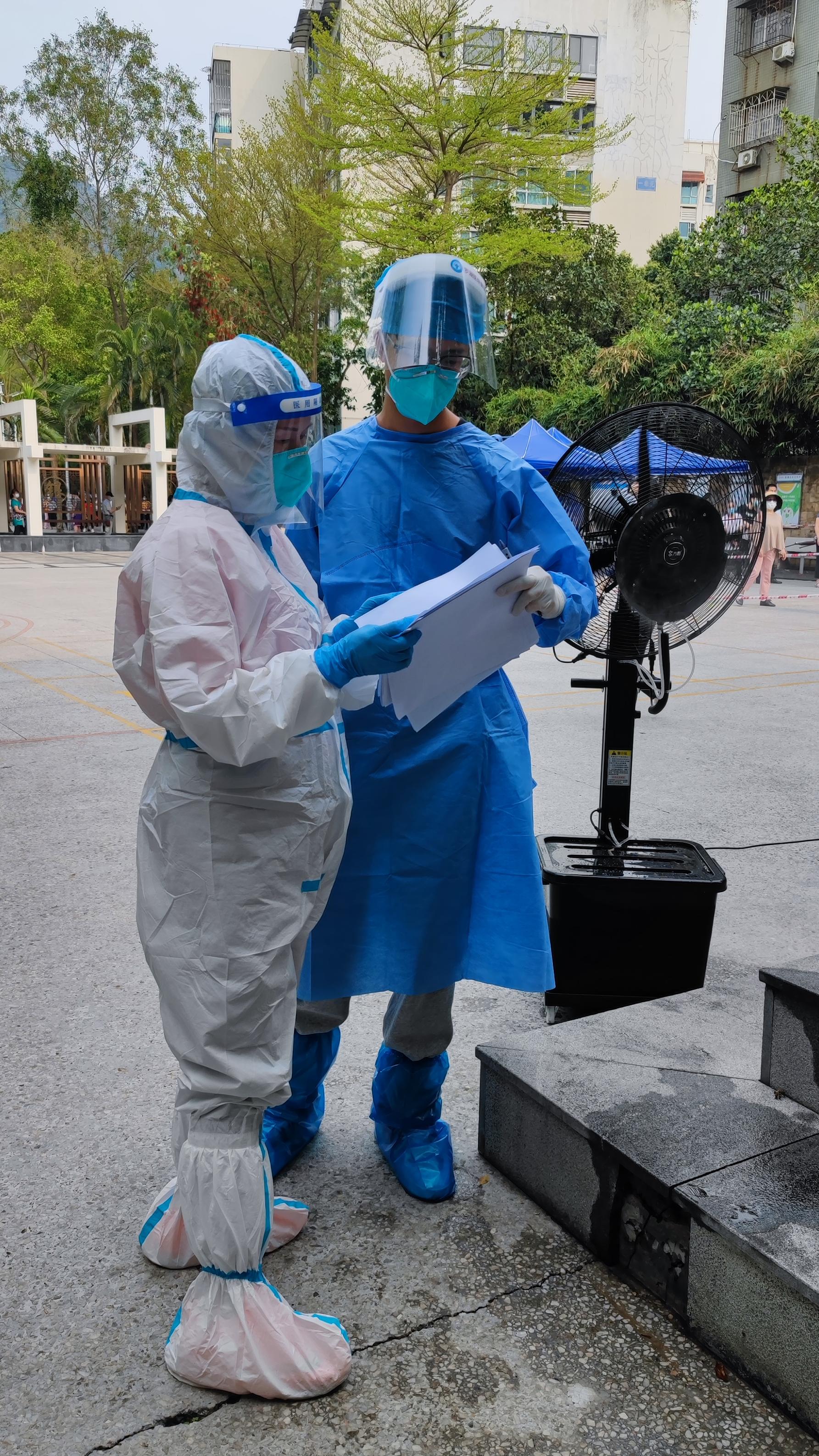 自2022年1月起,母子二人多次参与清水河街道草埔西社区疫情防控工作,作为医务人员,小邓分别负责封控区、管控区核酸采样点点长、防疫物资派发、标本收集等工作,他认真负责、勇于吃苦,时刻牢记参加抗“疫”时母亲告诉自己的一句话:在疫情防控的关键时刻,要不怕苦、不怕累。母亲则积极主动参与草埔西社区管控区及银湖社区的核酸采样、电话流调数据排查、防疫宣传等工作。从事社会工作15年的妈妈,当发现儿子因为长时间的防疫工作表现出疲惫时,就会及时地疏导、安抚小邓的情绪,让儿子以饱满的热情开展防疫工作。