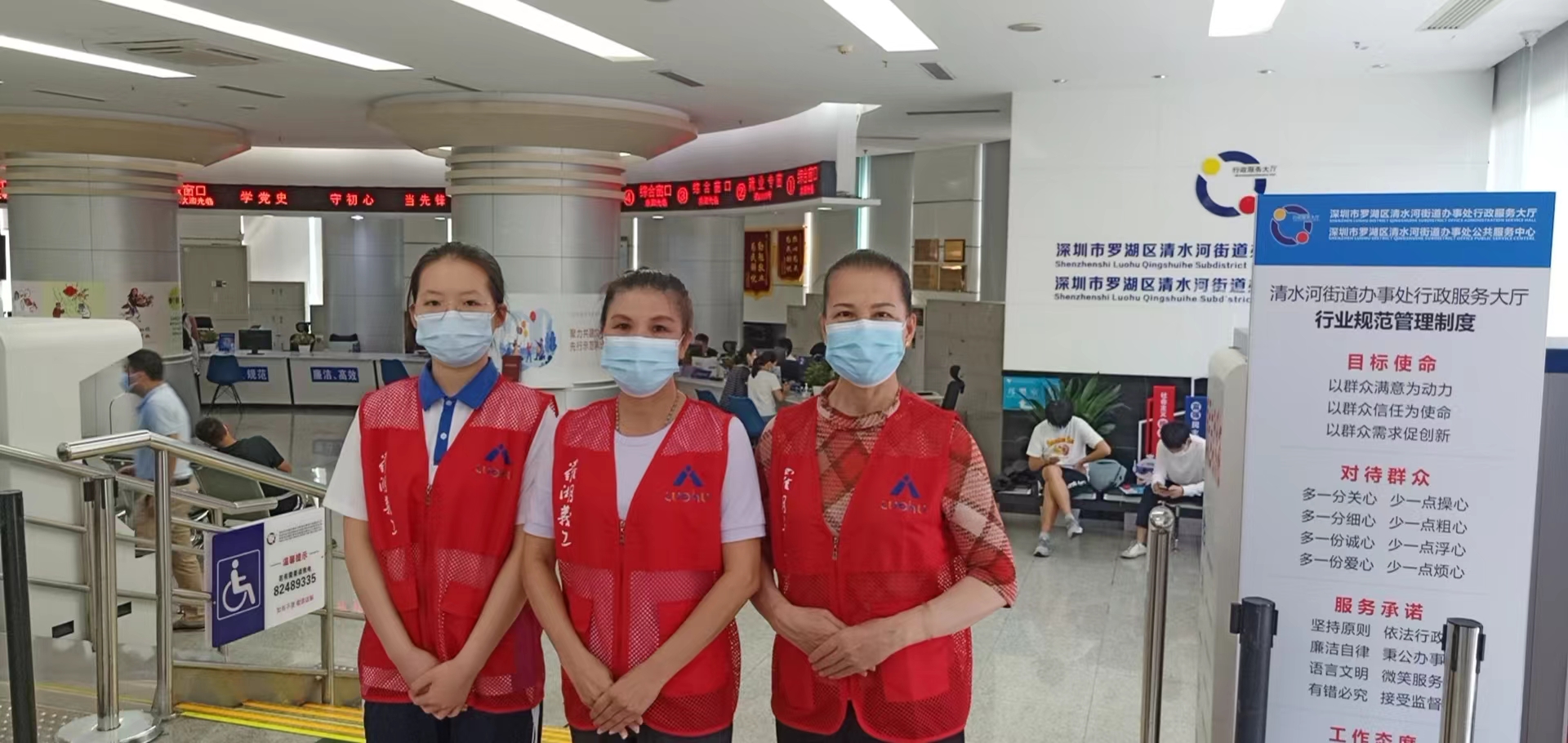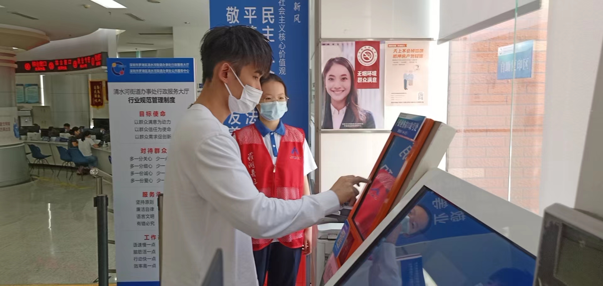 罗湖家园网讯:2022年8月正值暑假期间,前来清水河街道行政服务中心办理业务的人激增,面对这一情况,为了方便市民办理业务,提升办事群众的体验感和满意度,清水河城市服务U站联动清水河街道各社区青年志愿者,由学生志愿者每日在政务服务大厅为前来办事的市民提供志愿服务。
