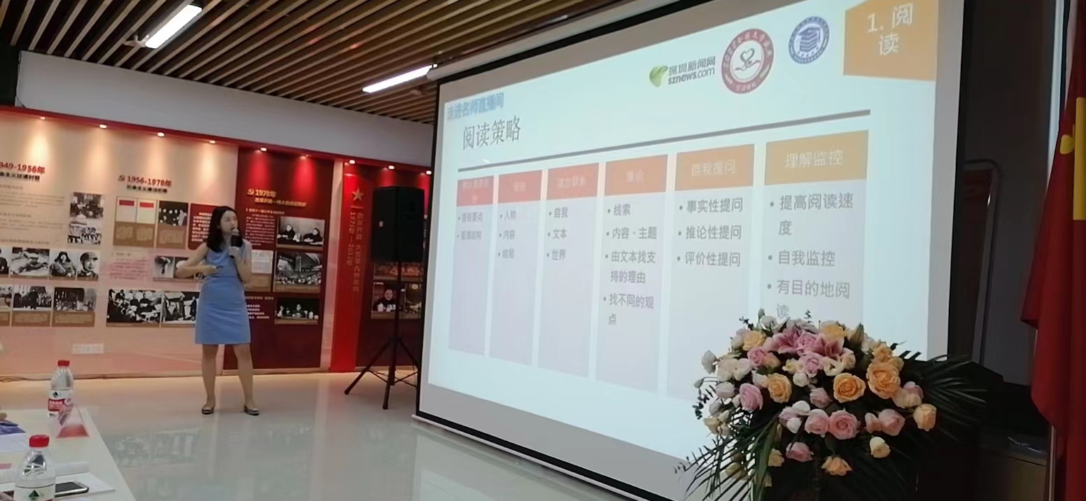 暑假期间同学们有自动自发地阅读吗?阅读不是只有语文课上才发生的,你觉得还有什么时候会阅读呢?影响学生阅读成效的原因是什么?……在名师大讲堂现场,刘翔宇带来了创新性的主题分享,她巧妙地调动课堂气氛,让学生与家长共同参与到本次活动中来。她表示,从三年级开始,孩子们应该慢慢地学习预测、学习提问、学习提高阅读速度、学习有目的地阅读,“随着年级的增加,我们慢慢地从阅读中学习,通过阅读去学习学科以外的知识。阅读是充斥在我们生活中的各个部分的。”