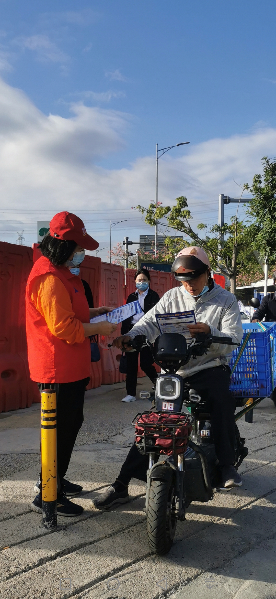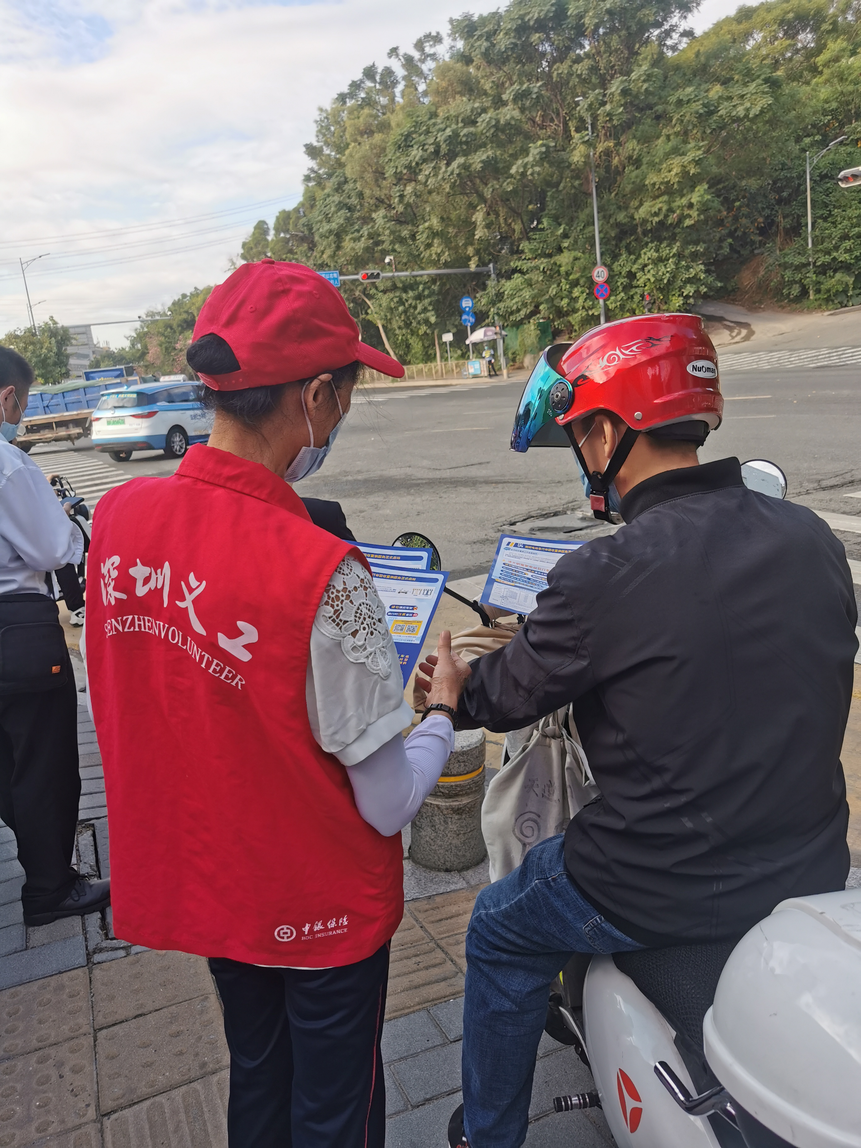 罗湖家园网讯:为进一步规范电动自行车管理、增强驾乘人员的交通安全意识、营造“文明交通人人参与”的良好氛围,2022年11月16日,罗湖区银湖社区新时代文明实践站、深圳市东西方社工服务社联合清水河街道城市志愿服务U站组织志愿者在清水河加油站等场所开展“一盔一带践于行 平安顺达始于心”交通安全宣传活动。