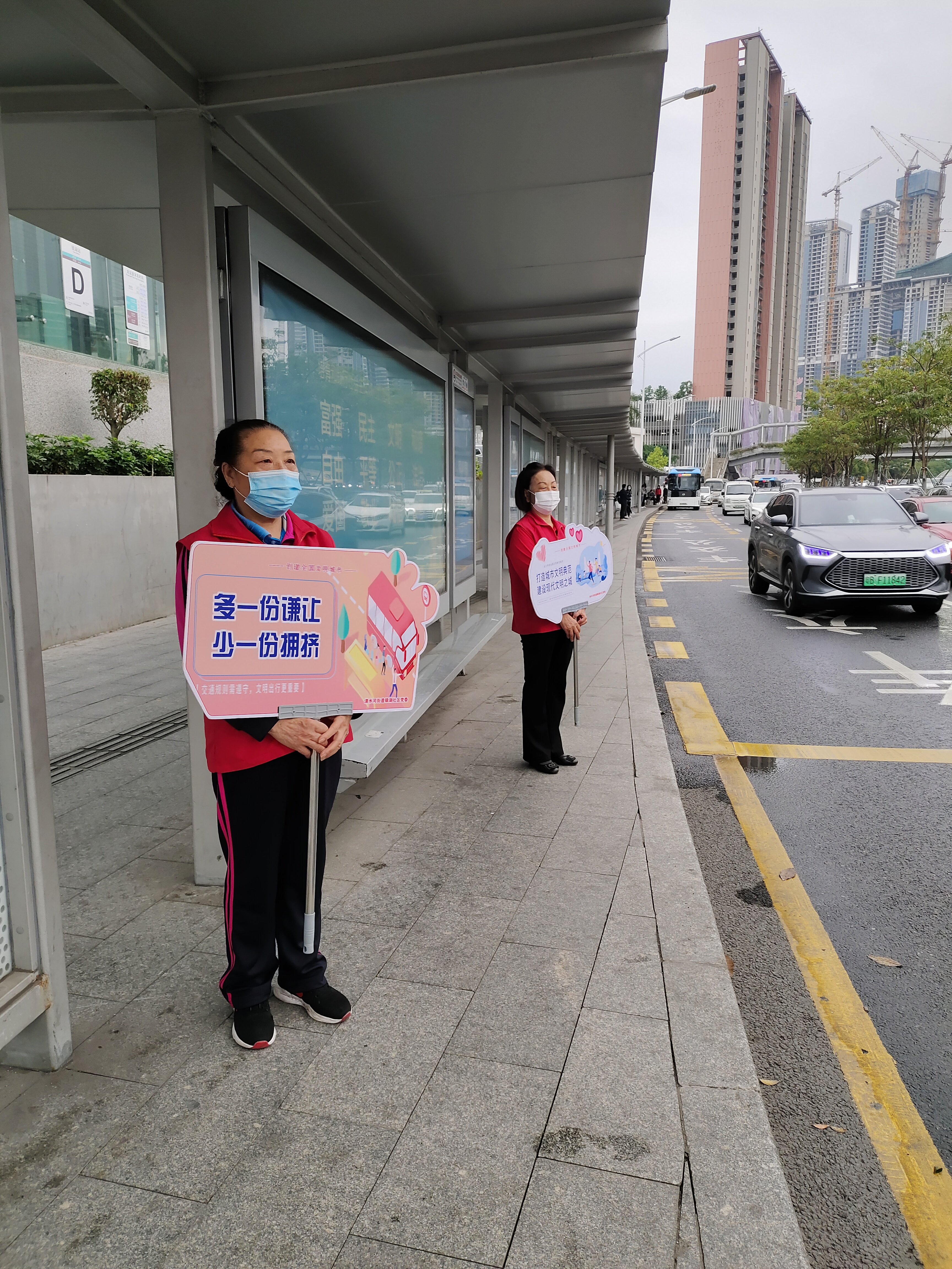 罗湖家园网讯:4月25日,在清水河街道银湖社区各交通主干道路口,随处可见身穿红马甲精神饱满的志愿者们手持各种提示标语,引导大家有序文明出行。这是银湖社区新时代文明实践站,东西方社工银湖服务中心,清水河U站志愿者,学生志愿者们开展的文明交通志愿服务活动,他们希望通过这种志愿服务,为创建文明城市助力加油。