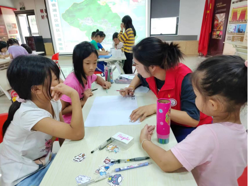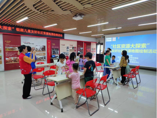 罗湖家园网讯:为了促进青少年就近参与社会实践活动,推动青少年参与社区社会治理, 7月28日下午,清水河街道银湖社区党群服务中心联合深圳市北斗社会工作服务中心社工,并结合暑期夏令营招募培训了15名少先队员成为社区小管家,在银湖社区青少年之家开展“社区资源大探索”儿童友好社区资源地图绘制活动。