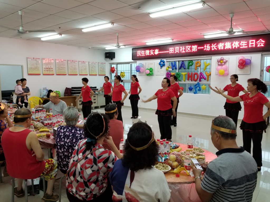 田贝社区居委会在田贝花园四楼会议室开展了民生微实事项目——第一场长者集体生日会