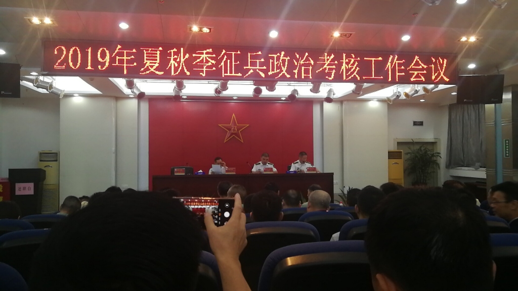 田贝社区工作人员参加笋岗街道举办的2019年夏秋季征兵政治考核工作会议。