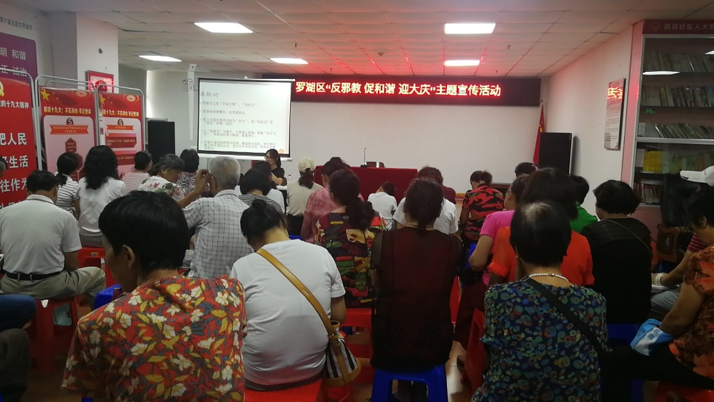 田贝社区开展罗湖区“反邪教 促和谐 迎大庆”主题宣传活动知识讲座。
