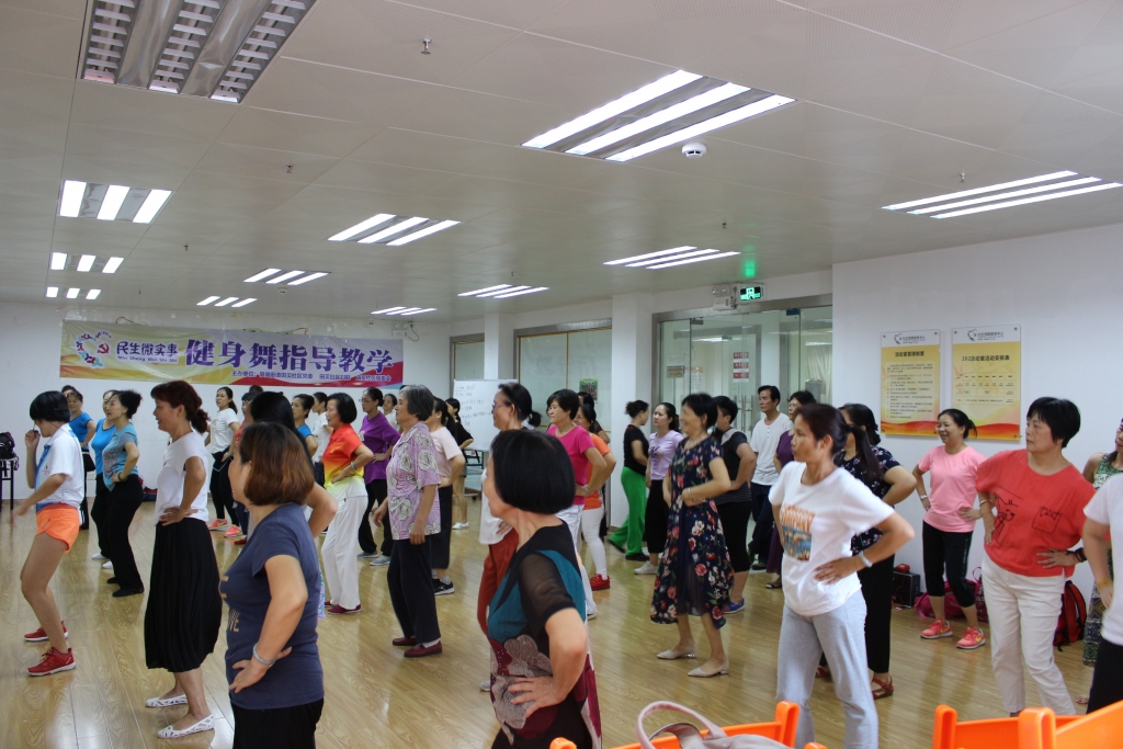 健身舞指导教学在田贝社区党群服务中心的活动室开展了健身舞培训的课程