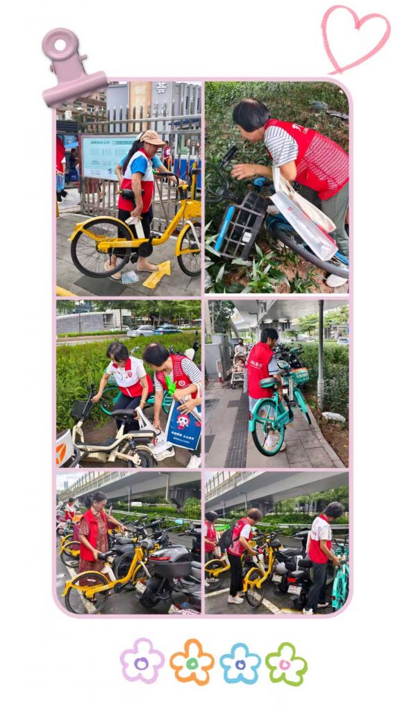 台风过境,社区积极开展灾后恢复工作,共同缔造美好宜居家园。9月25日下午,在笋岗街道田贝社区党委的领导下,田贝社区党群服务中心北斗社工、新时代文明实践站、社区工作人员、网格员积极响应号召,组织辖区14名志愿者共同开展了灾后恢复清理工作。此次活动聚焦于清理路面散落的垃圾、断枝等杂物,扶正并规范摆放被台风刮倒的电动车及共享单车,旨在迅速消除台风影响,保障市民安全出行,恢复整洁有序的城市环境。