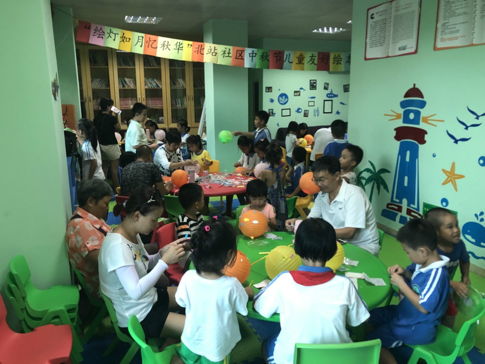 为了迎接中秋节,弘扬传统文化。2019年9月12日下午,北站社区党群服务中心在新时速嘉园绘本馆开展了“绘本时空”项目之“绘灯如月忆秋华”北站社区中秋节儿童友好绘本绘画工作坊。此次活动招募到了30多名小朋友。