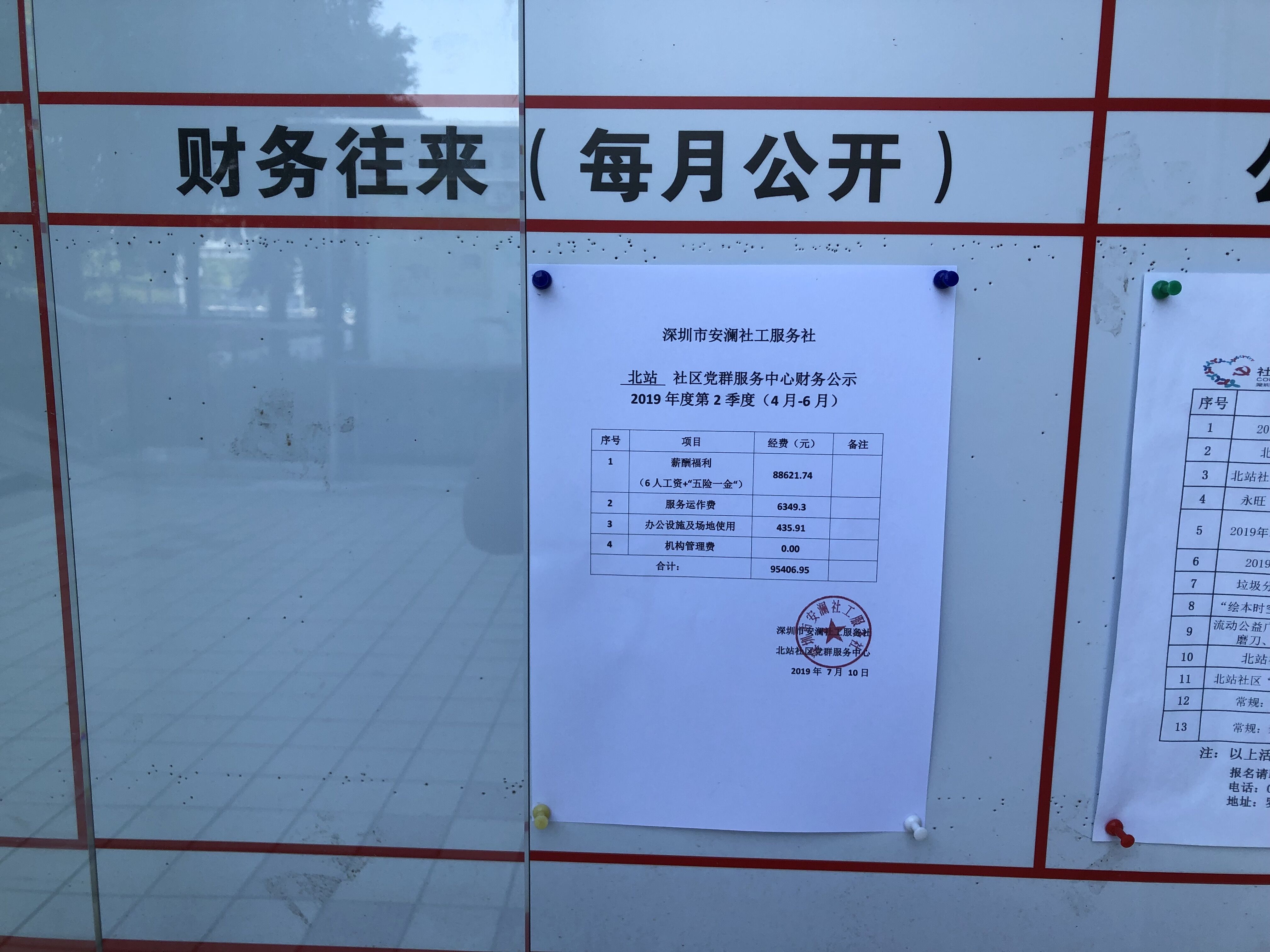 北站社区党群服务中心财务公示2019年度第2季度(4月-6月)