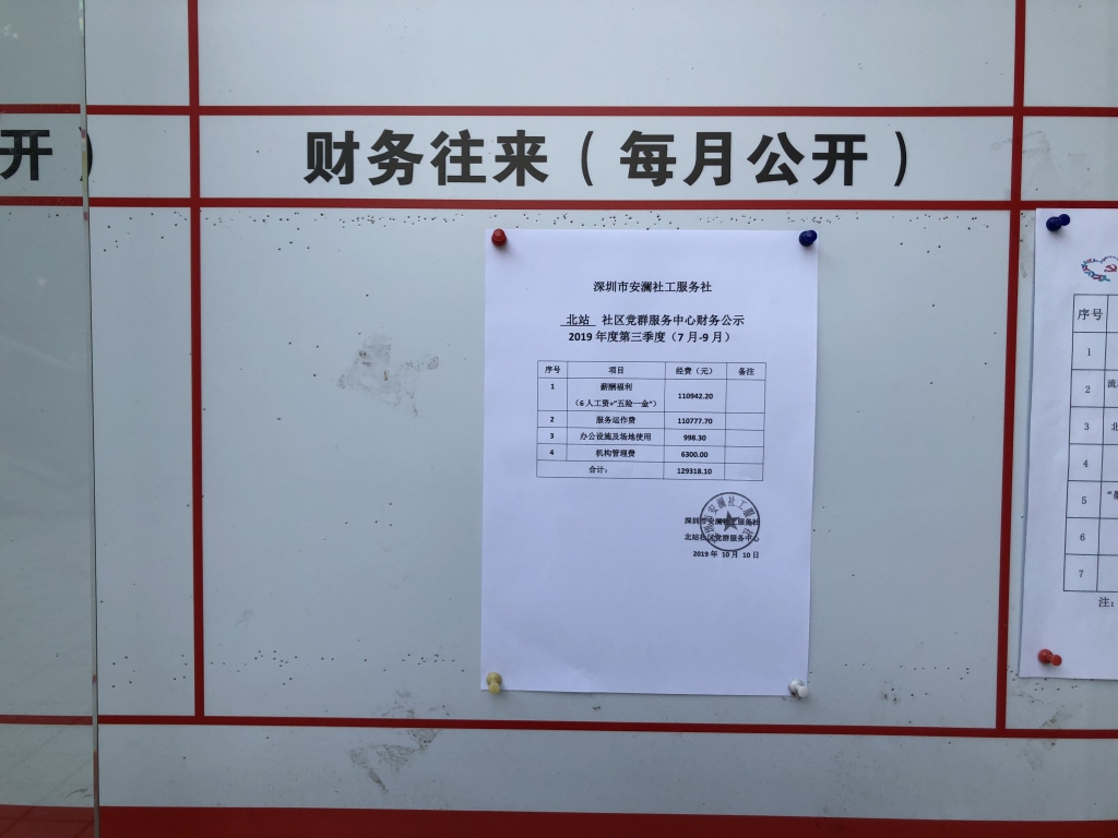 北站 社区党群服务中心财务公示2019 年度第三季度(7 月-9 月)