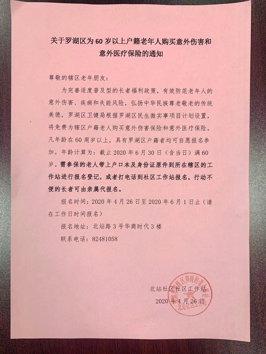 关于罗湖区为60岁以上户籍老年人购买意外伤害和意外医疗保险的通知