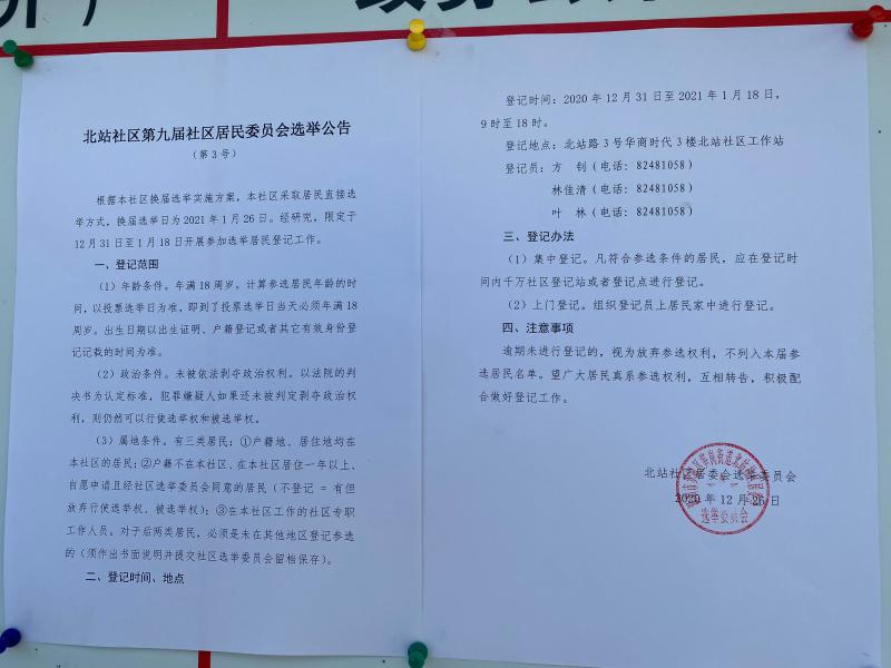 北站社区第九届社区居民委员会选举委员会公告(第3号)