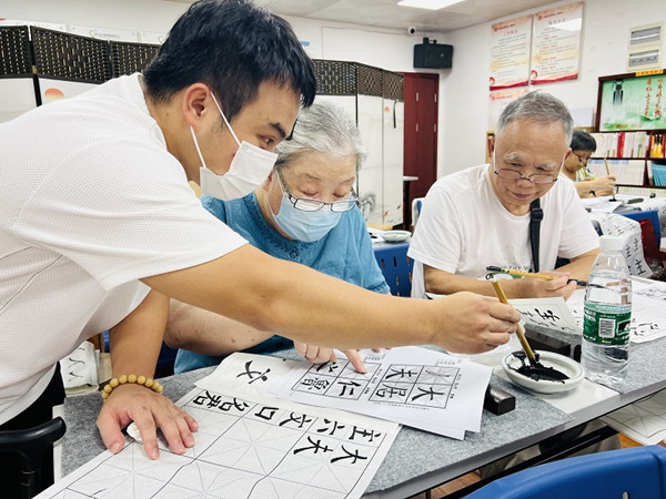 2023年9月5日下午,在笋岗街道北站社区党委、居委支持下,民生微实事项目《非遗传承敬老情,老有所学享晚年”--中老年人文化传承系列活动》墨香书法-国学大讲堂第二场如期开展,报名参加活动的居民们满怀期待,提前来到社区,在课程开始前,自主练习起上节课学习的内容。