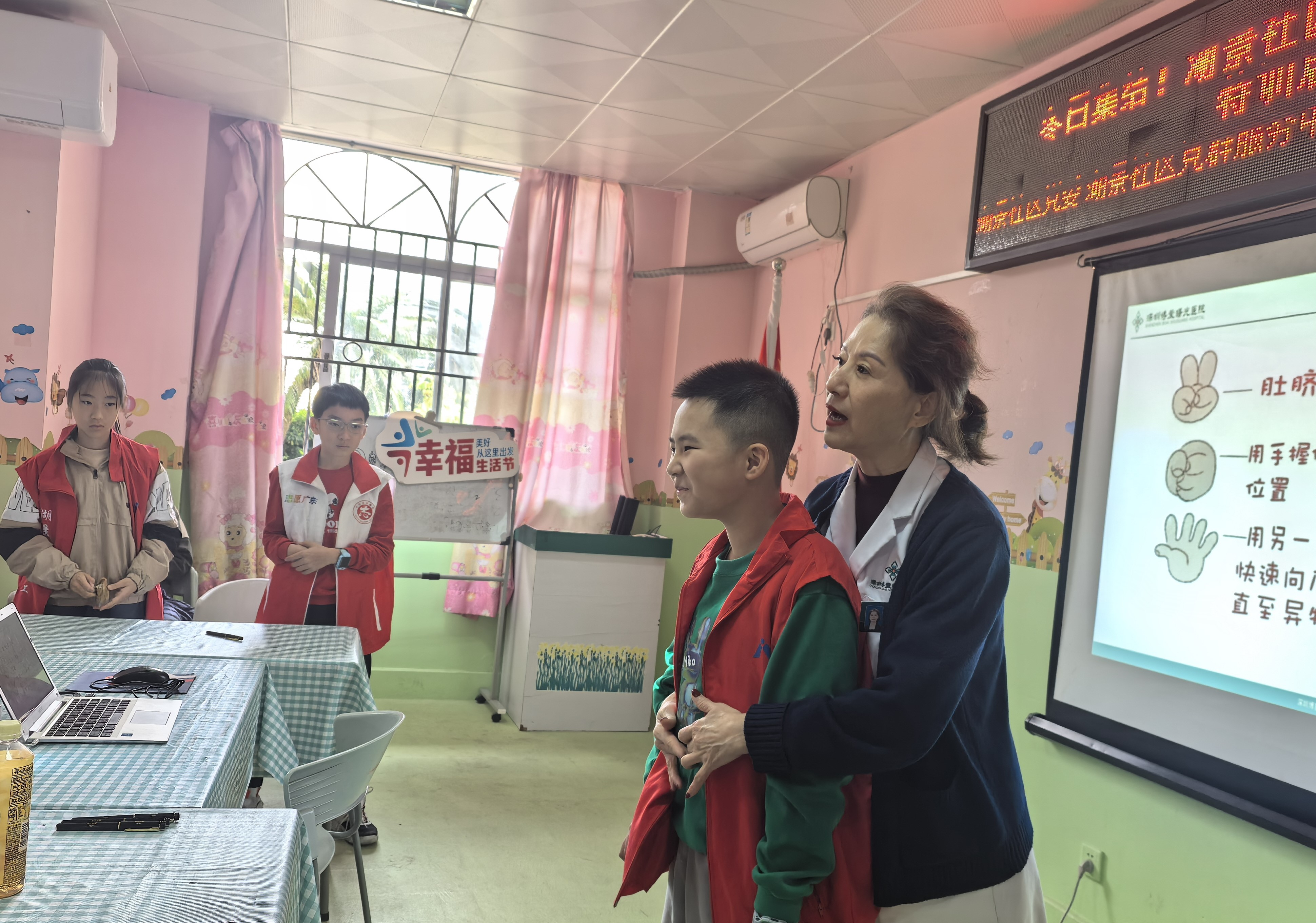 为提升社区青少年志愿者的应急救援能力,普及急救知识,1月21日下午,在湖景社区党委的指导下 ,湖景社区党群服务中心、湖景社区新时代文明实践站、深圳市北斗社会工作服务中心联合深圳市博爱曙光医院在社区活动中心开展了一场专门针对青少年志愿者的海姆立克急救法培训活动。此次培训请来深圳博爱曙光医院张主任为青少年志愿者们授课,共吸引了社区内 13 名青少年志愿者踊跃参与,现场气氛热烈。