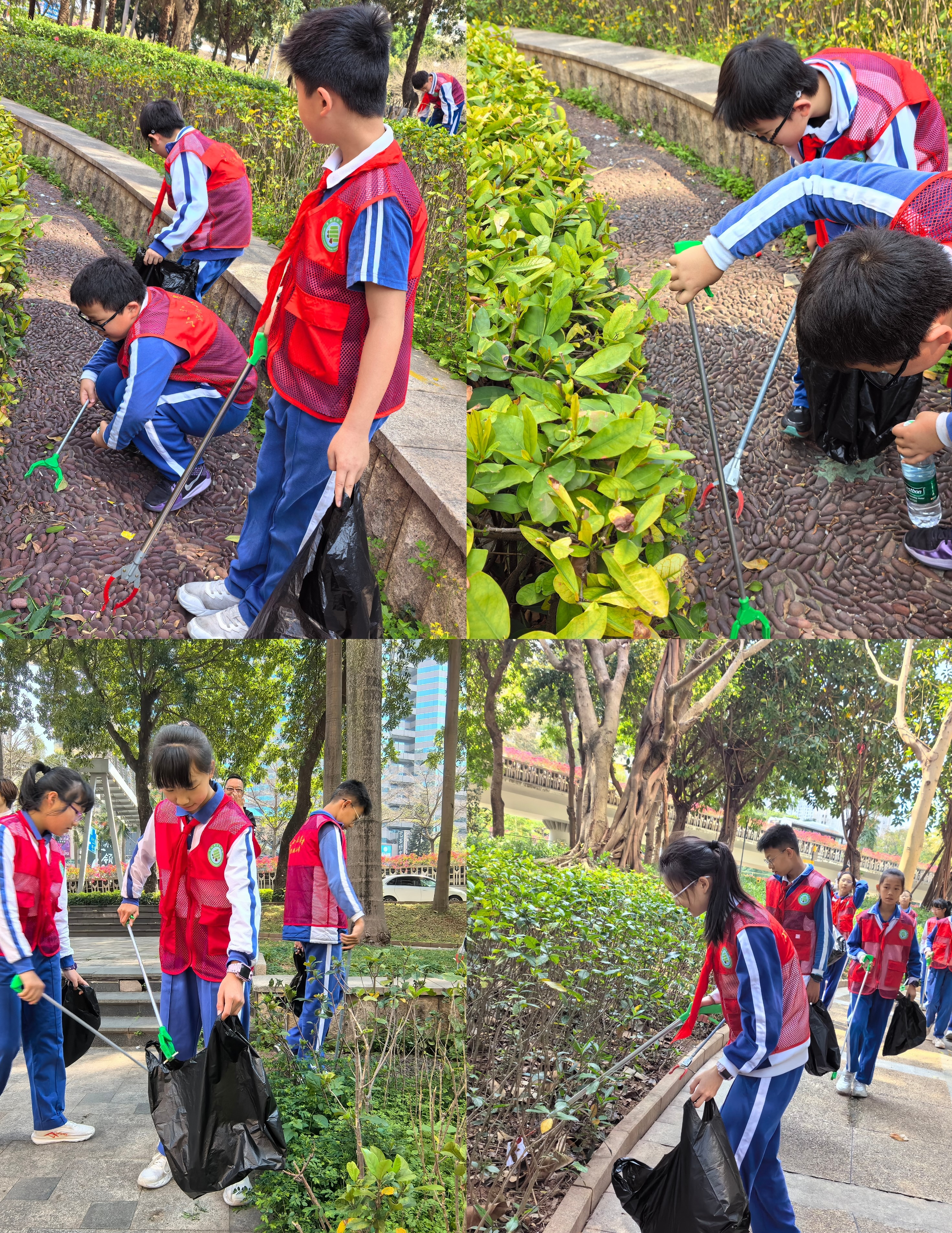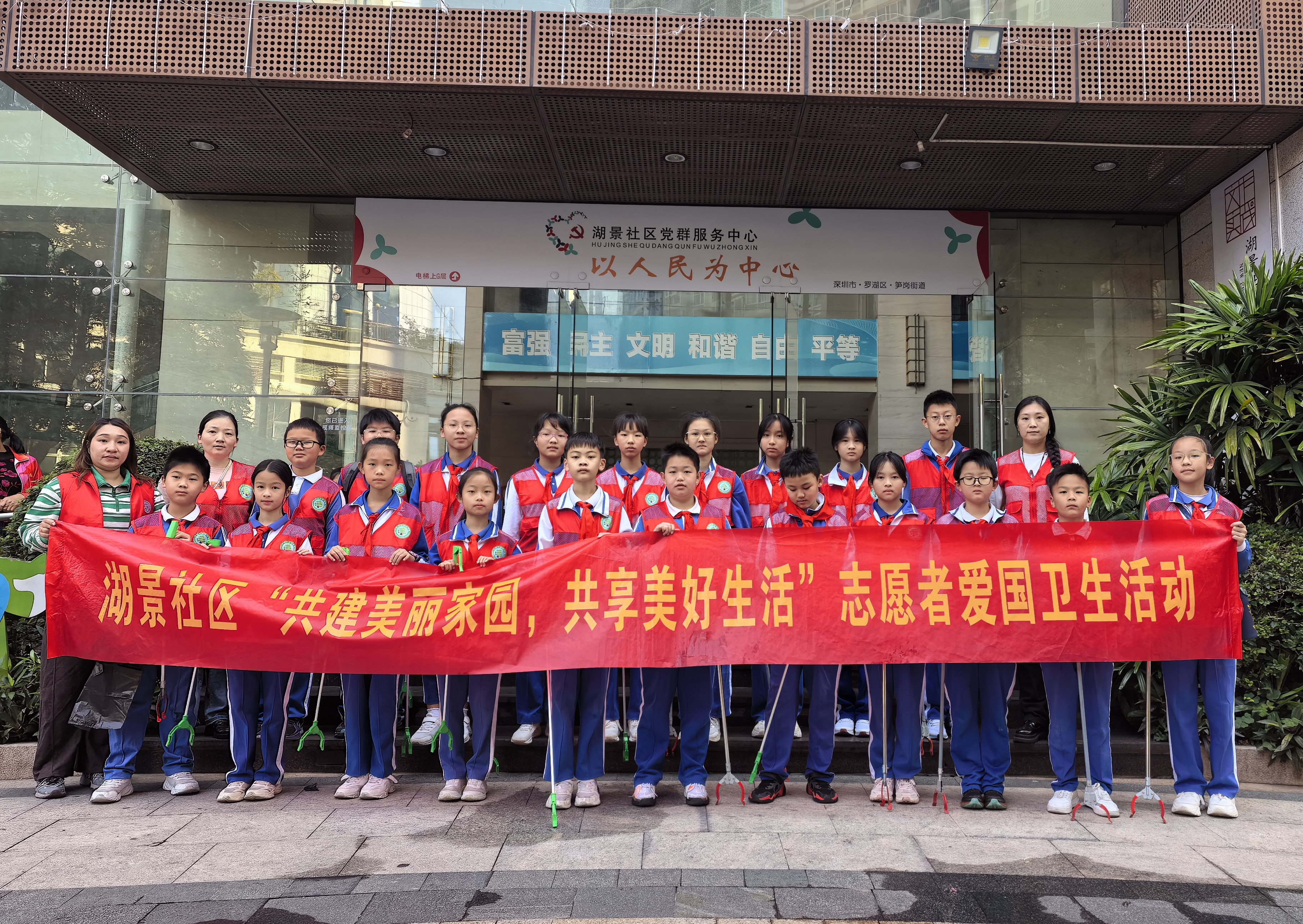 为传承和弘扬雷锋精神,引导青少年积极参与社会实践,3月15日上午,在湖景社区党委的指导下,湖景社区党群服务中心联合深圳市北斗社会工作服务中心,携手洪湖小学,共同开展了以“学雷锋,净家园”为主题的社区清扫活动。此次活动旨在培养学生的社会责任感,增强他们爱护环境的意识,同时通过实际行动为社区居民创造一个更加整洁、舒适的生活环境。共有22名洪湖小学师生志愿者参与了活动。